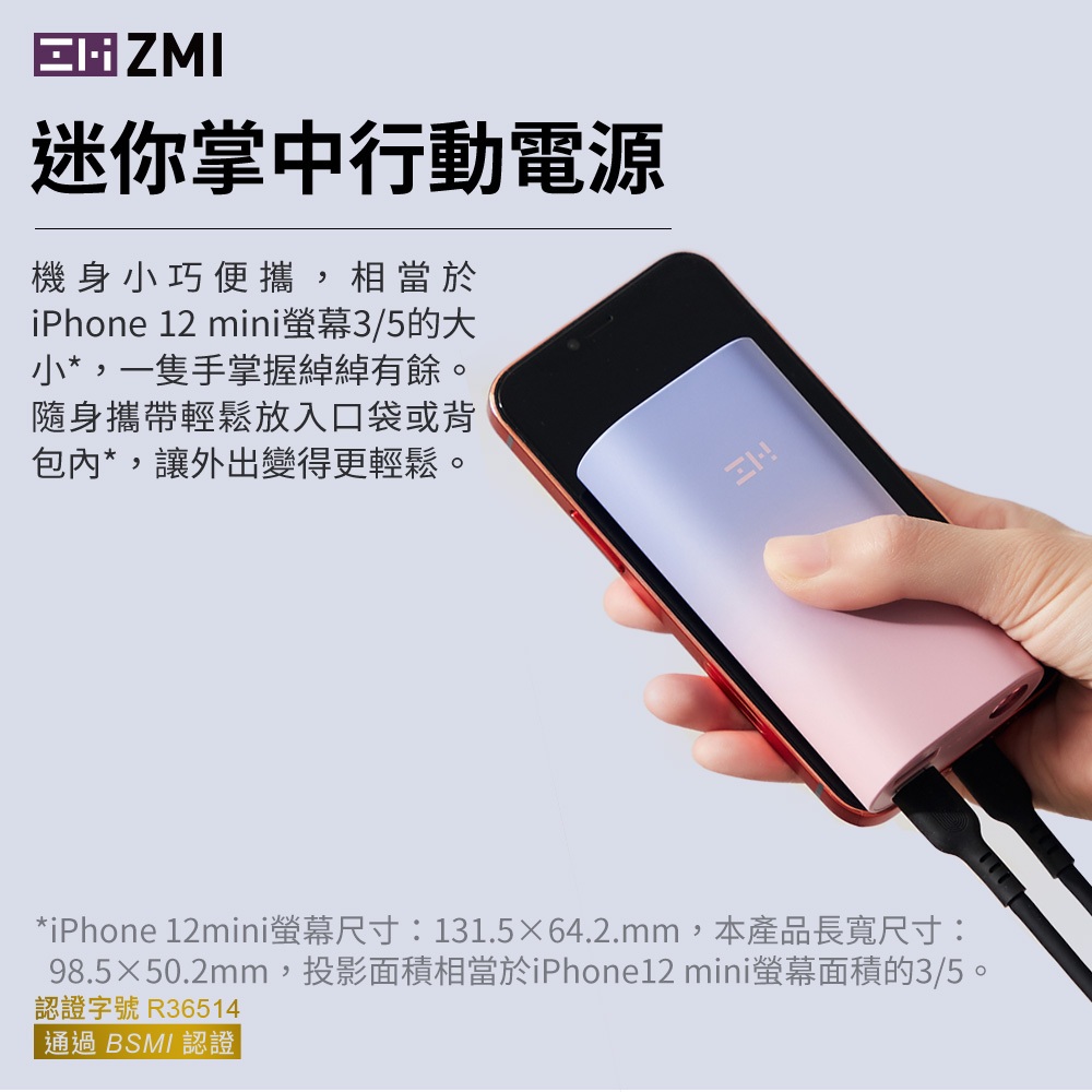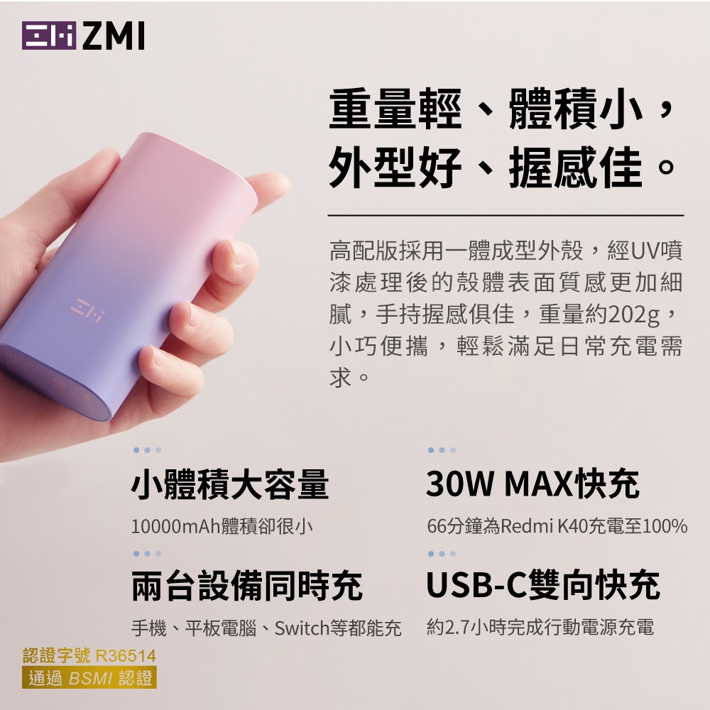 ZMI 30W 迷你型行動電源 10000mAh (QB818) PD QC 雙向快充 Wh標示 符合航空規範 可上飛機粉紫Powerbanks & BatteriesKamera 佳美能旗艦館