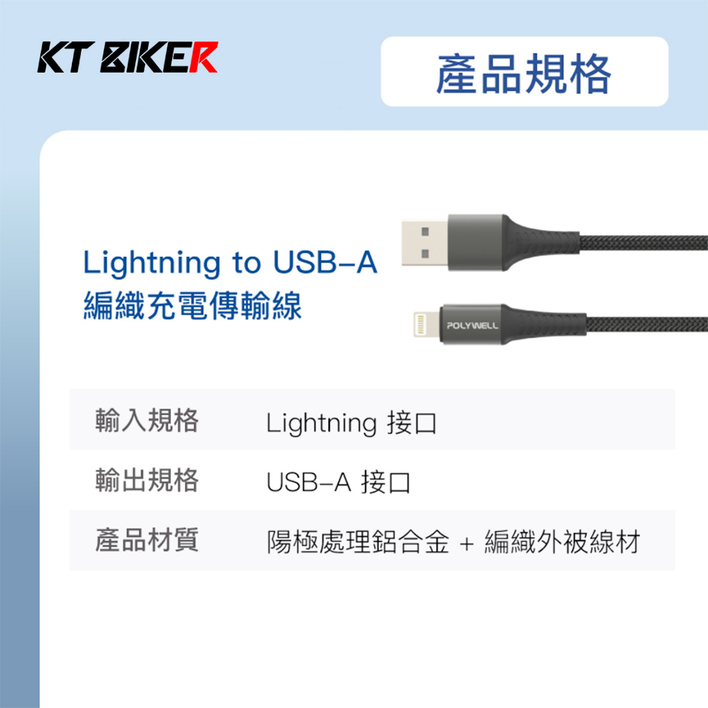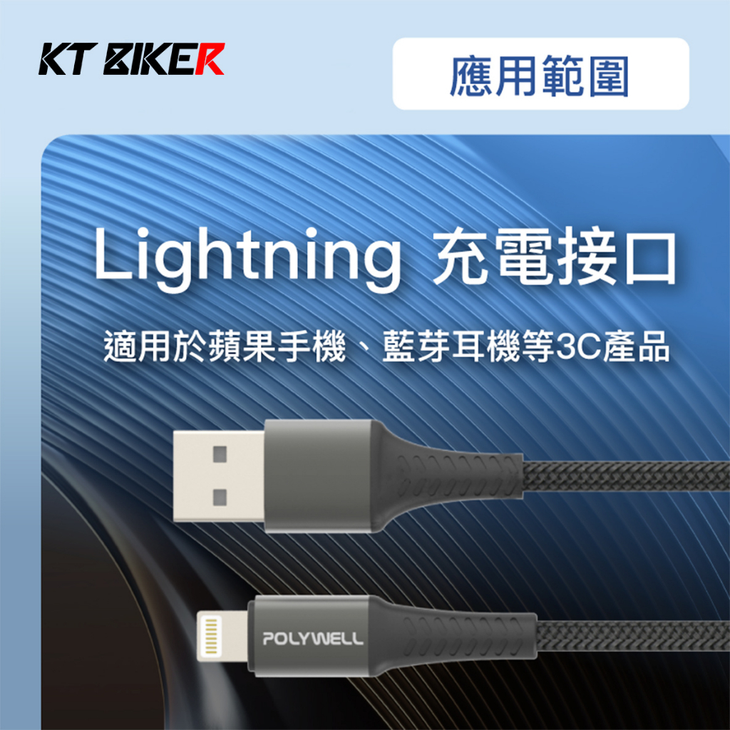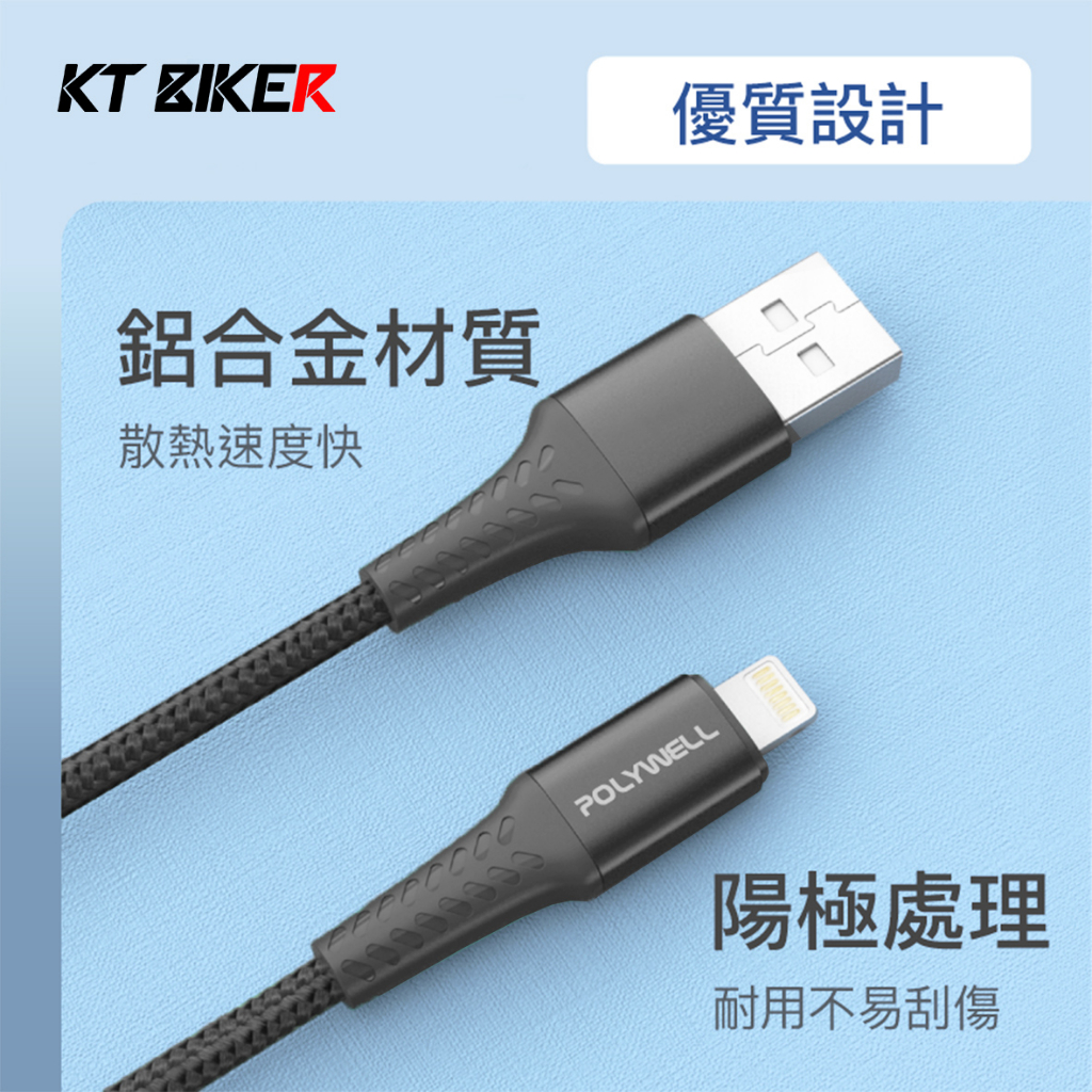 【KT BIKER】 USB-A To Lightning 編織快充線 蘋果充電線 充電線 傳輸線 台灣品牌 原廠保固USB To Lightning 快充線|USB車充Cables, Chargers & ConvertersKT BIKER 專注車品