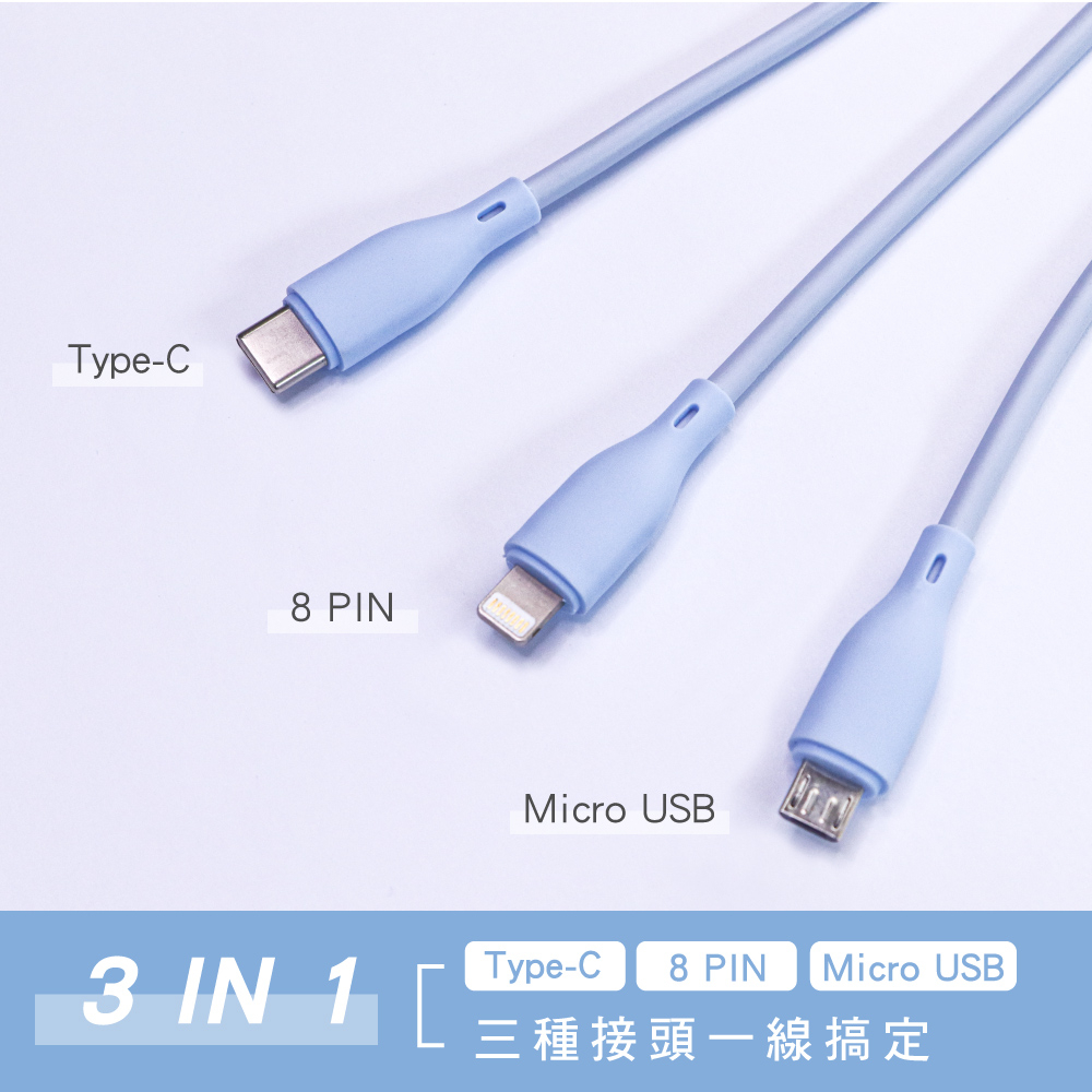 【KINYO】三合一急速快充線(長) (USB)充電線 多合一功能線 Type-C 8 PIN Micro USB 30USBD03 三合一快充線Cables, Chargers & ConvertersKINYO官方旗艦店_家電館