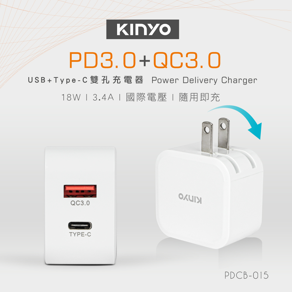 〖KINYO〗 雙孔PD充電器18W (PDCB)國際電壓 折疊式插頭 18W快充PDCB015 充電器18W|充電器18W (限時特賣下單專用)Cables, Chargers & ConvertersKINYO官方旗艦店_家電館
