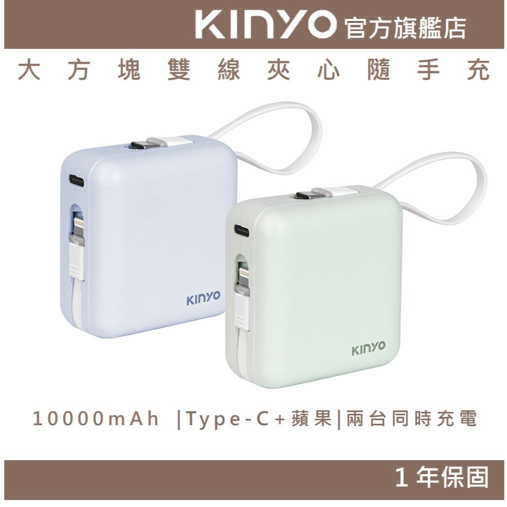 〖KINYO〗 10000mAh 大方塊雙線夾心隨手充 (KPB) 行動電源 行充 Type-C 蘋果 BSMI 免帶線KPB2303BU 藍色|KPB2303G 綠色|藍色 (限時特賣下單專用)|綠色 (限時特賣下單專用)Powerbanks & BatteriesKINYO官方旗艦店_家電館
