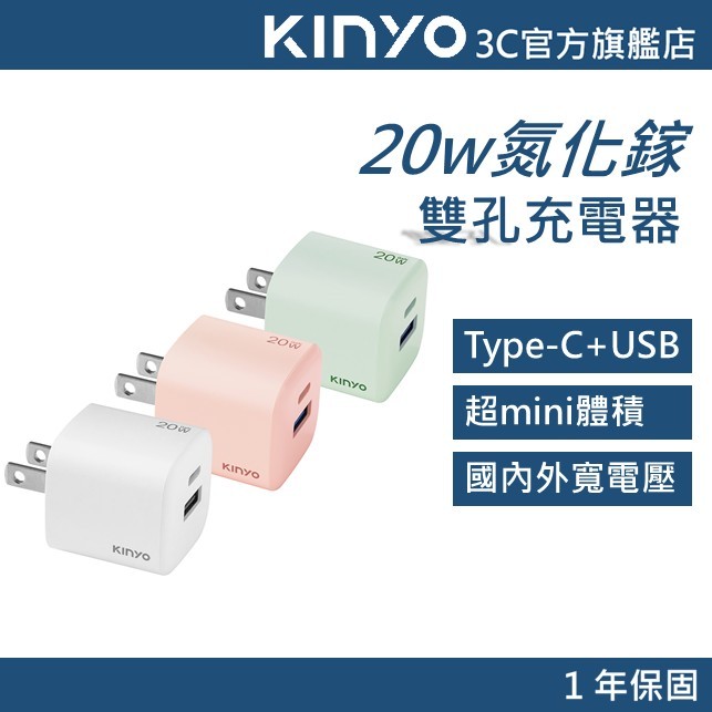 【KINYO官方直營】20W快充 氮化鎵雙孔充電器(PDCB) 充電頭 Type-C USB-A 國際電壓綠色|粉色|白色Cables, Chargers & ConvertersKINYO官方旗艦店_3C館