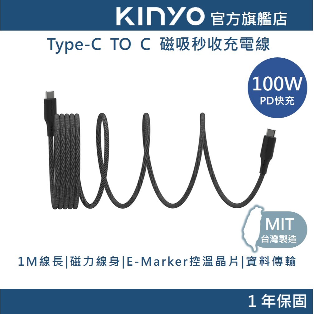 【KINYO官方直營】Type-C 100W磁吸秒收充電傳輸線 (UCS) 資料線 充電線 快充線 筆電 蘋果15 安卓