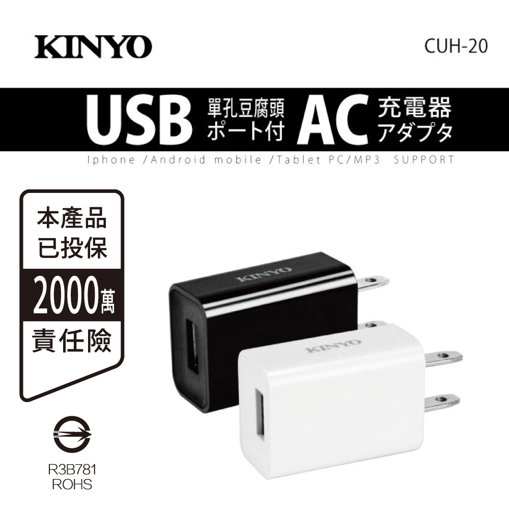 【KINYO官方直營】6W 單孔USB充電頭(CUH) 支援國際電壓CUH20B1 黑色|CUH20W1 白色Cables, Chargers & ConvertersKINYO官方旗艦店_3C館