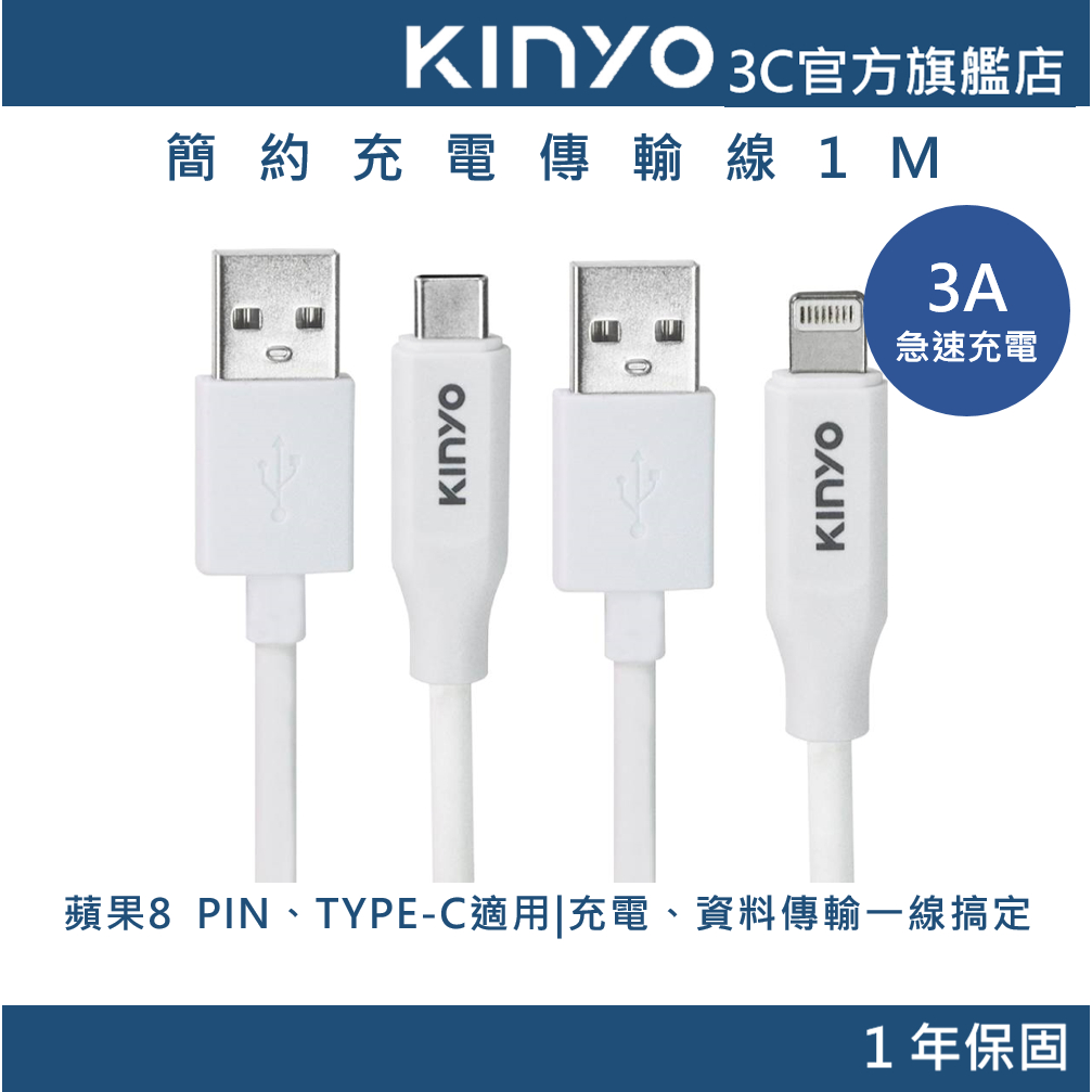 【KINYO官方直營】加長抗拉急速充電傳輸線-1M (USB) lightning Apple蘋果 Type-CUSBA912 蘋果8 PIN適用|USBC912 Type-C適用Cables, Chargers & ConvertersKINYO官方旗艦店_3C館