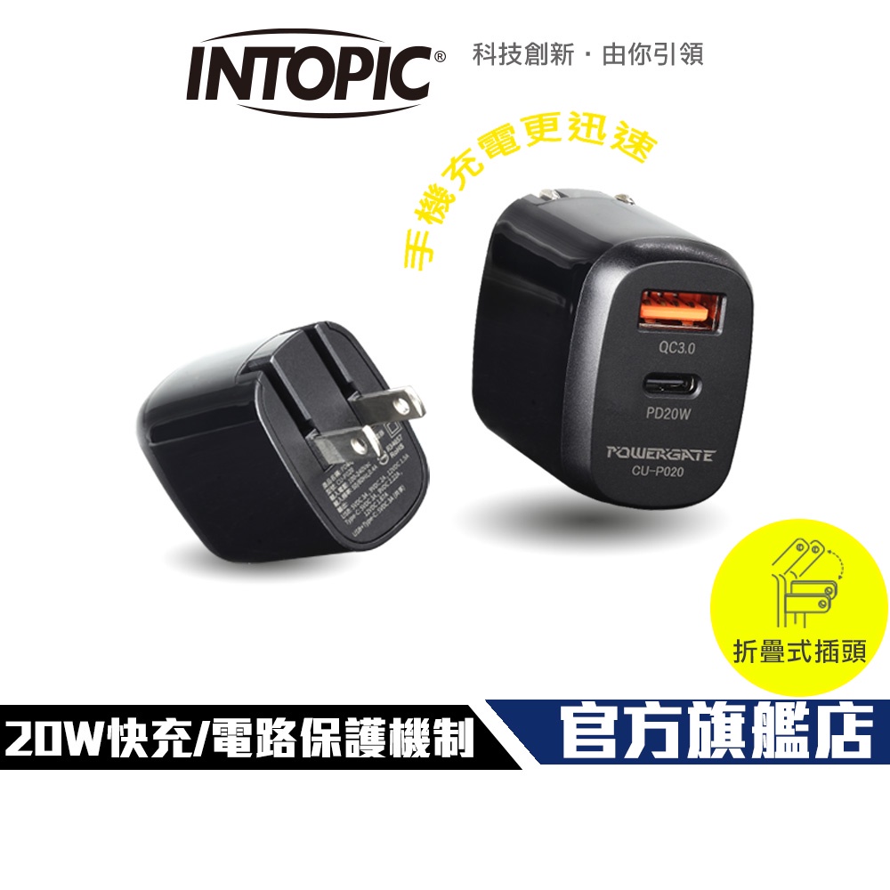 【Intopic】CU-P020 PD&QC 20瓦快充 雙孔1C1A 手機充電 快充 旅充 變壓器 豆腐頭 TypeC