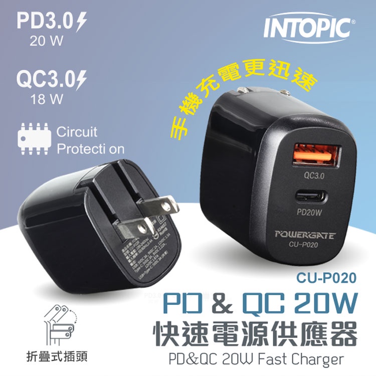 【Intopic】CU-P020 PD&QC 20瓦快充 雙孔1C1A 手機充電 快充 旅充 變壓器 豆腐頭 TypeC【Intopic】CU-P020 PD&QC 20瓦快充 雙孔1C1A 手機充電 快充 旅充 變壓器 豆腐頭 TypeCCables, Chargers & ConvertersIntopic廣鼎國際 | 官方3C旗艦館