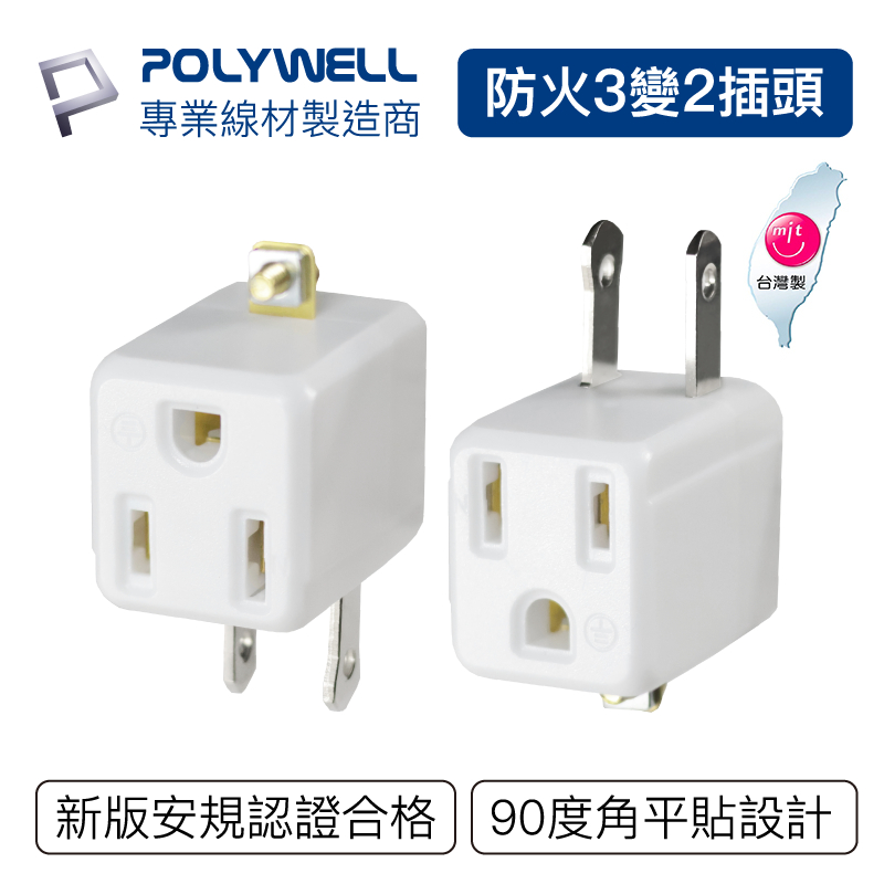 【POLYWELL】3變2插頭 2插座 台灣製造 MIT 充電座 充電頭 插頭3變2插頭(無開關)|3變2插頭(有開關)Cables, Chargers & ConvertersJC科技 官方旗艦店