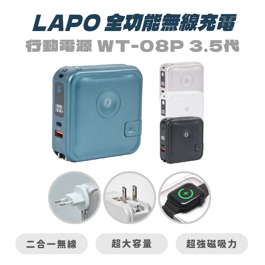【LaPO】全功能無線充電行動電源 WT-08P 3.5代 行充 行動電源 充電器 八合一充電器 8合一行動電源柔霧白,Type-C+lightning 蘋果線|柔霧白,Type-C+Type-C|琉光金,Type-C+lightning 蘋果線|琉光金,Type-C+Type-C|城影灰,Type-C+lightning 蘋果線|城影灰,Type-C+Type-CPowerbanks & BatteriesJC科技 官方旗艦店
