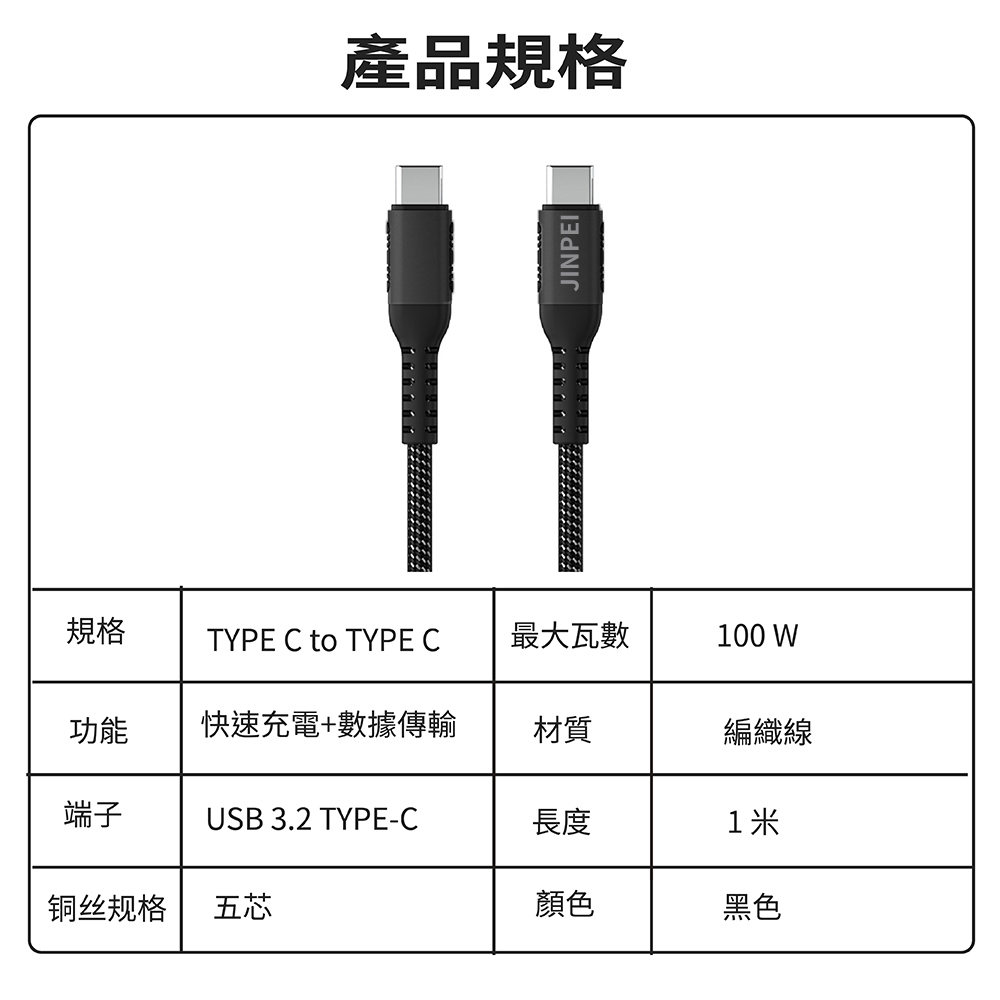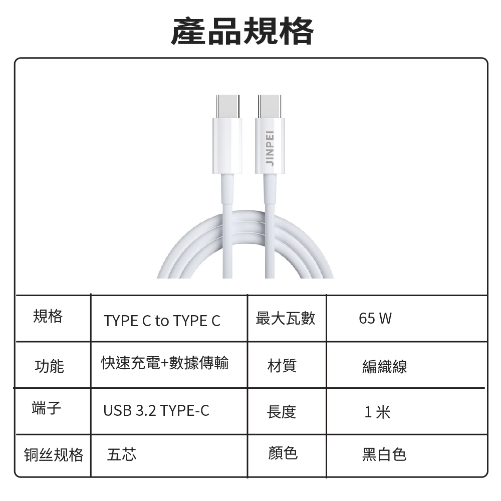 【JINPEI 錦沛】 Type C to C 手機充電線 充電器 65/100W 快充線 充電器Type C 基本款 1M 白色|Type C 編織 1M 黑色|Type C 編織 顯示1M 黑色|PD 30W 單孔充電器 白色|PD 65W 雙孔充電器 白色|PD 65W 雙孔充電器 黑色|PD 20W 雙孔充電器 白色|PD 30W 三孔充電器 白色Cables, Chargers & ConvertersJINPEI錦沛旗艦店