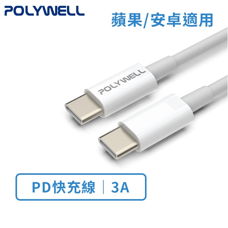 【POLYWELL】Type-C To C PD快充線 傳輸線 3A 2米 適用 Apple 安卓【JC科技】20公分|50公分|100公分|200公分Cables, Chargers & ConvertersJC科技 官方旗艦店