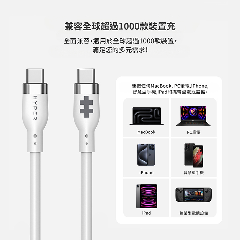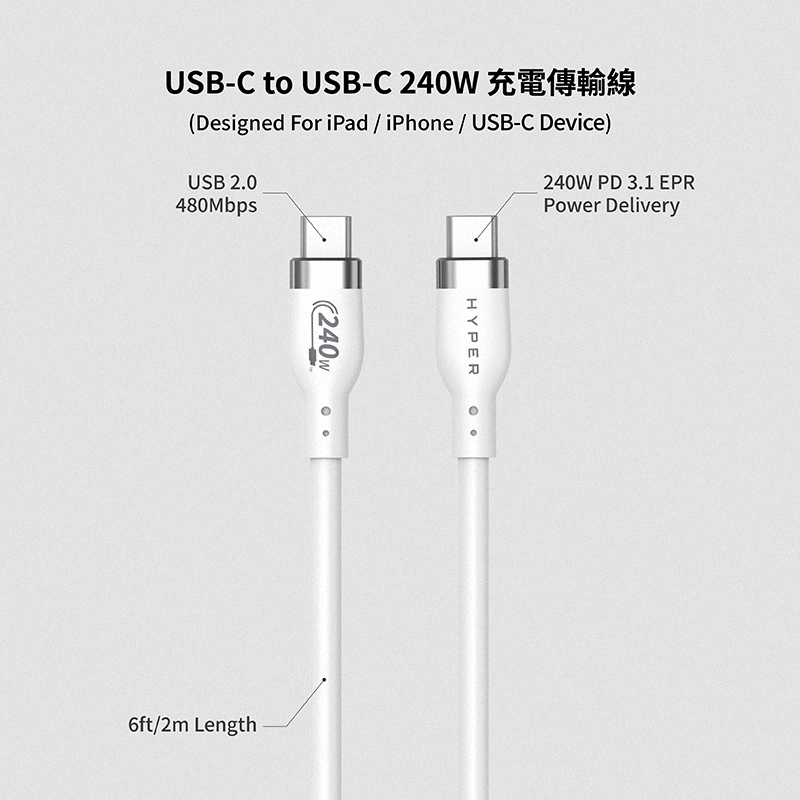 【HyperDrive】240W USB-C to USB-C 充電傳輸線2m-白【HyperDrive】240W USB-C to USB-C 充電傳輸線2m-白Cables, Chargers & ConvertersHyperDrive 台灣官方旗艦店