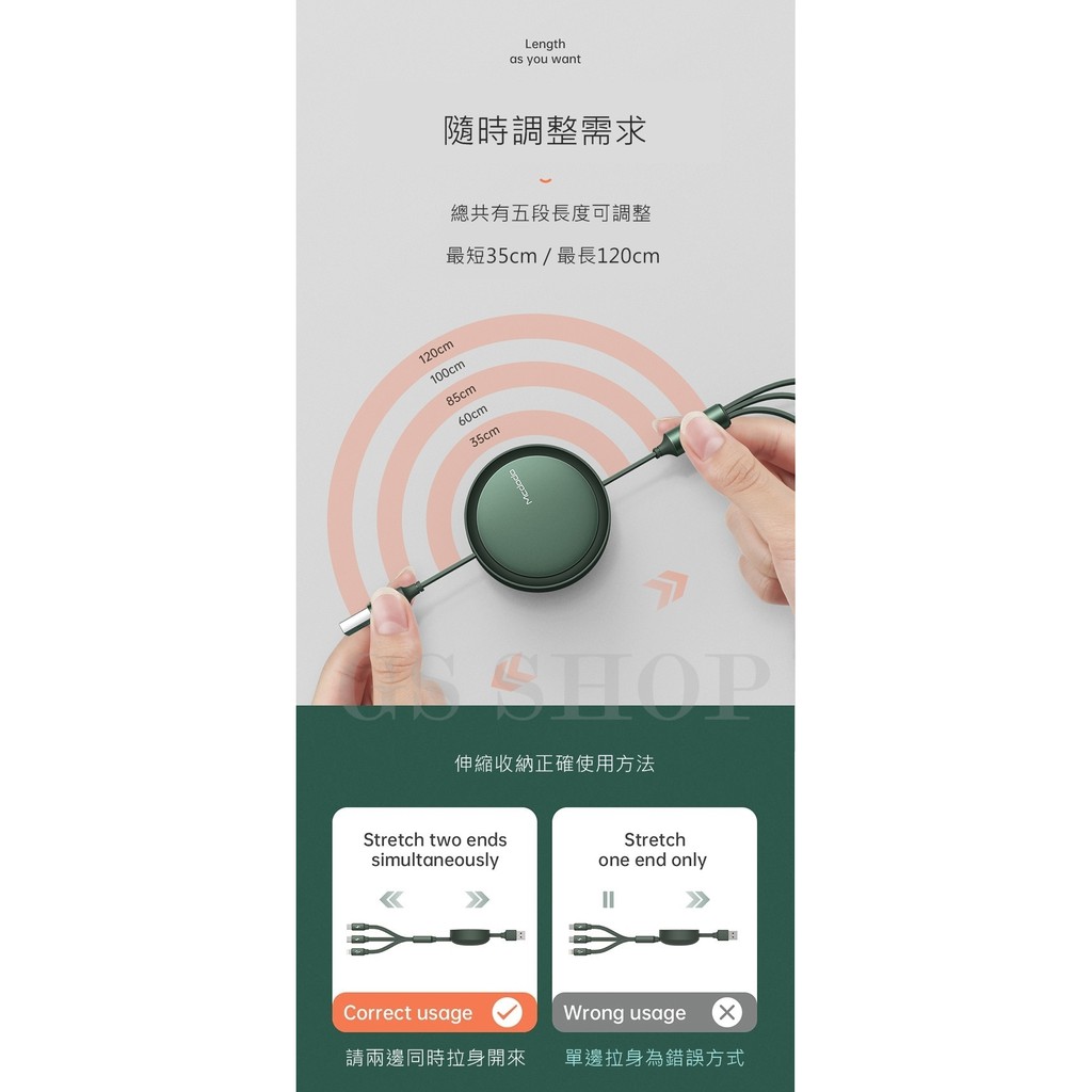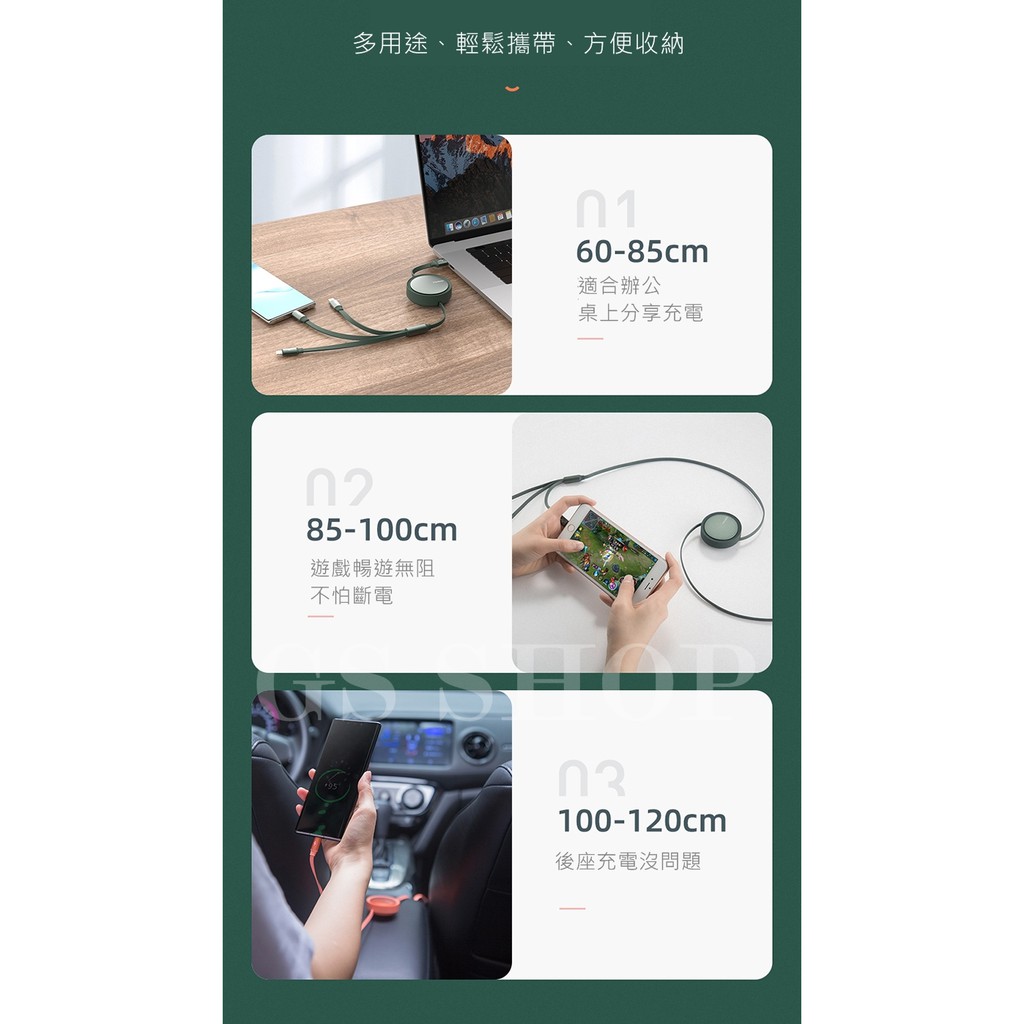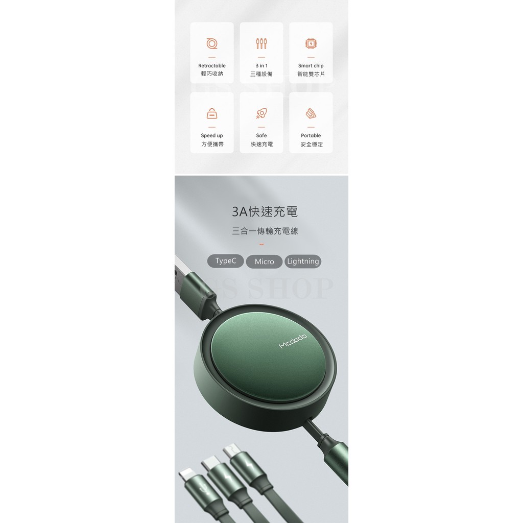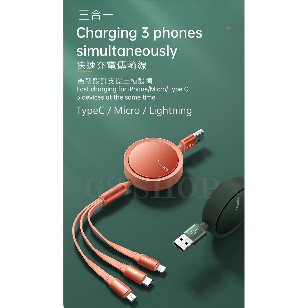 伸縮充電線 Mcdodo麥多多 三合一 一分三 iPhone Type C 安卓 3A 極速 充電線 傳輸線 120cm黑色,3A-伸縮充電傳輸線(120cm)|綠色,3A-伸縮充電傳輸線(120cm)Cables, Chargers & ConvertersGS 3C 手機平板配件選品店