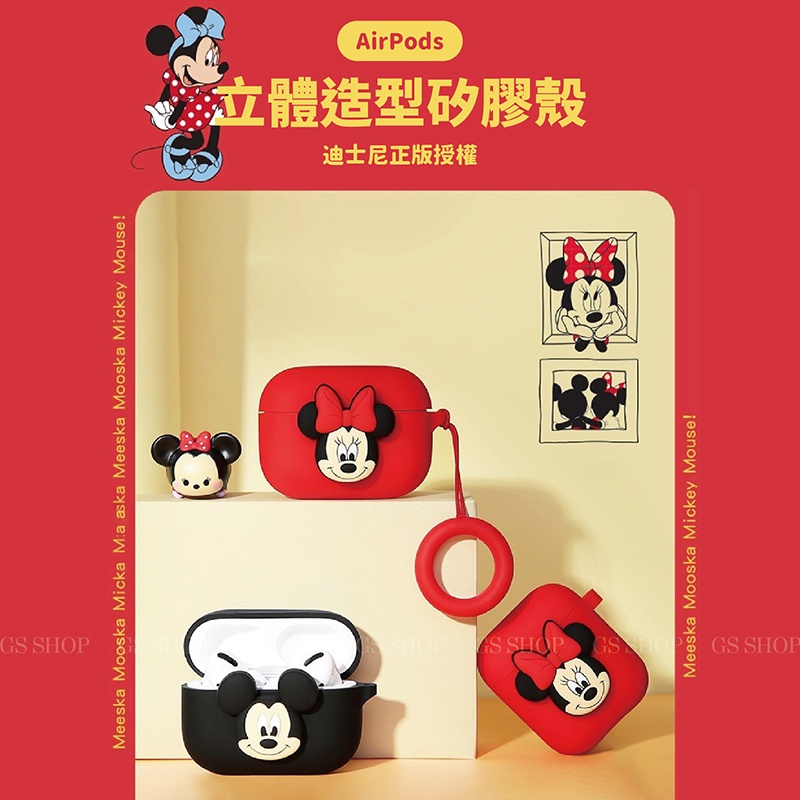 Disney 迪士尼 Airpods Pro 1/2代 立體矽膠 保護殼 保護套 耳機殼 米奇 米妮 防丟指環 軟殼米奇,Airpods Pro|米妮,Airpods ProWearable AccessoriesGS 3C 手機平板配件選品店