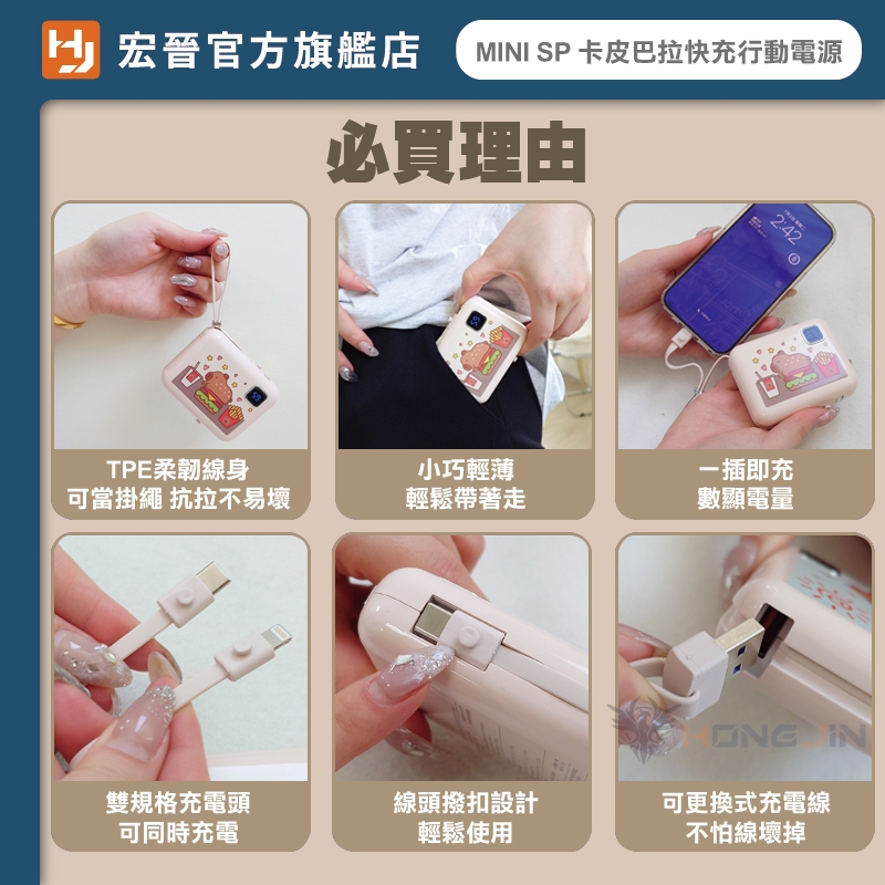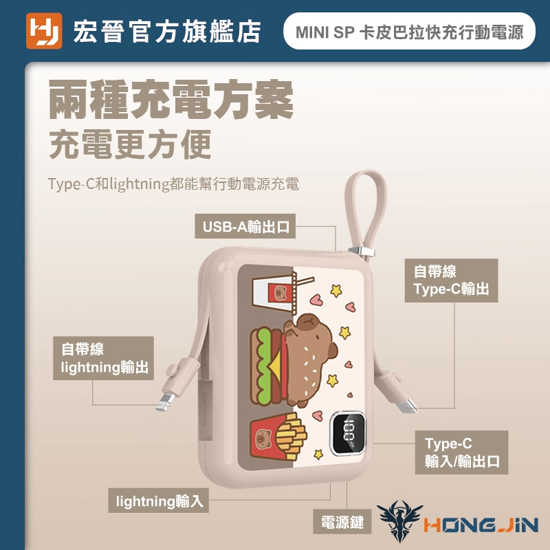 宏晉 卡皮巴拉 快充行動電源 自帶線 自帶充電線 掛繩 數字顯示電量 20W快速充電 10000mAh 隨身行動充悠哉-泡澡豚|可愛-豚擠豚|日光浴-幹飯豚|呆萌-漢堡豚|不想上班-瞌睡豚|團聚-疊疊豚|一起同樂-夾豚娃Powerbanks & BatteriesHONG JIN 宏晉 |3C資訊廣場