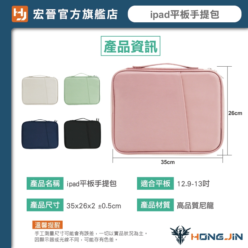 ipad平板手提包 手提款ipad平板收納包 多功能 收納袋 收納包 植絨防刮 減震 適合12.9吋 13吋佳人粉|神秘黑|高貴藍|清新綠|霧灰白Cases, Covers, & SkinsHONG JIN 宏晉 |3C資訊廣場