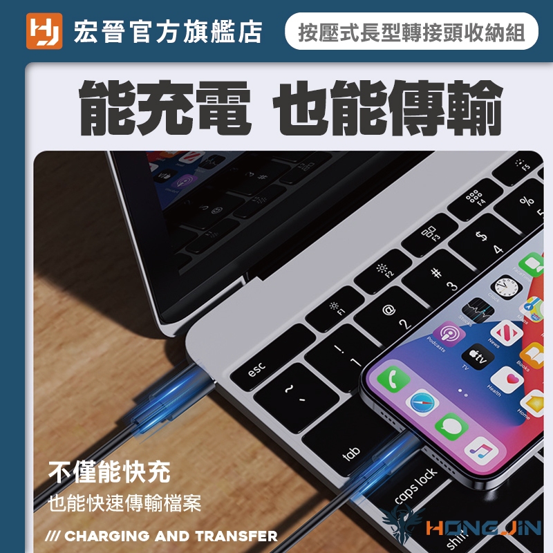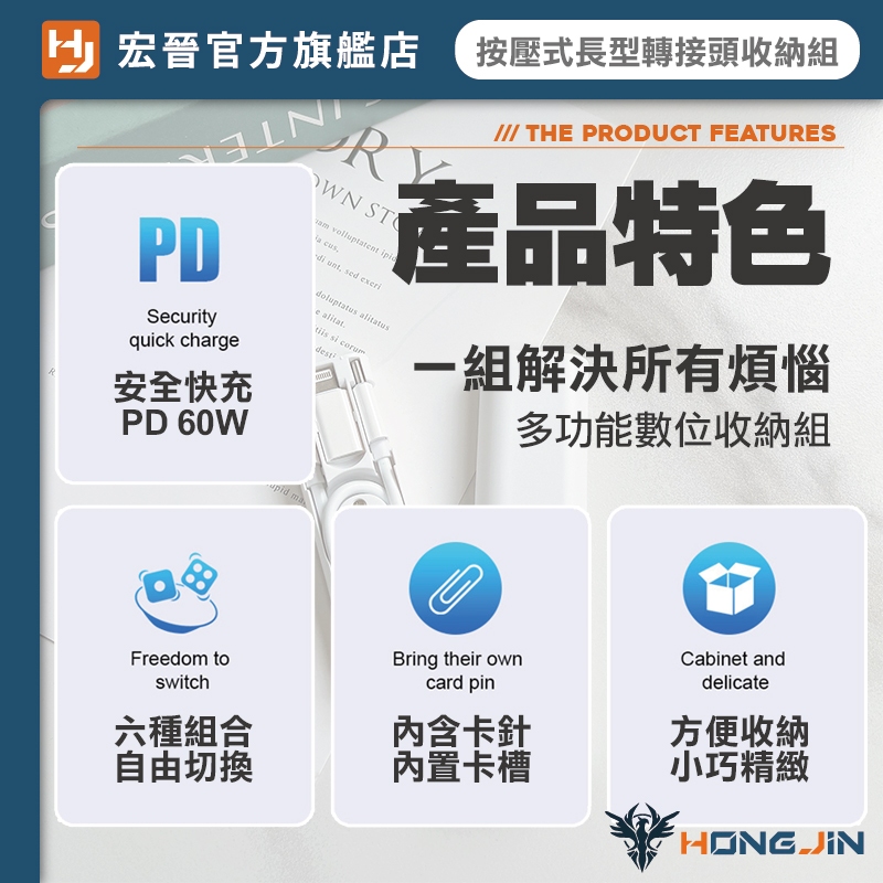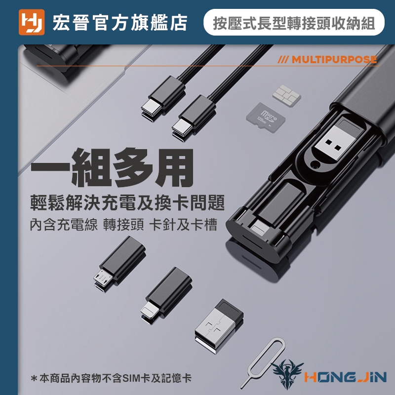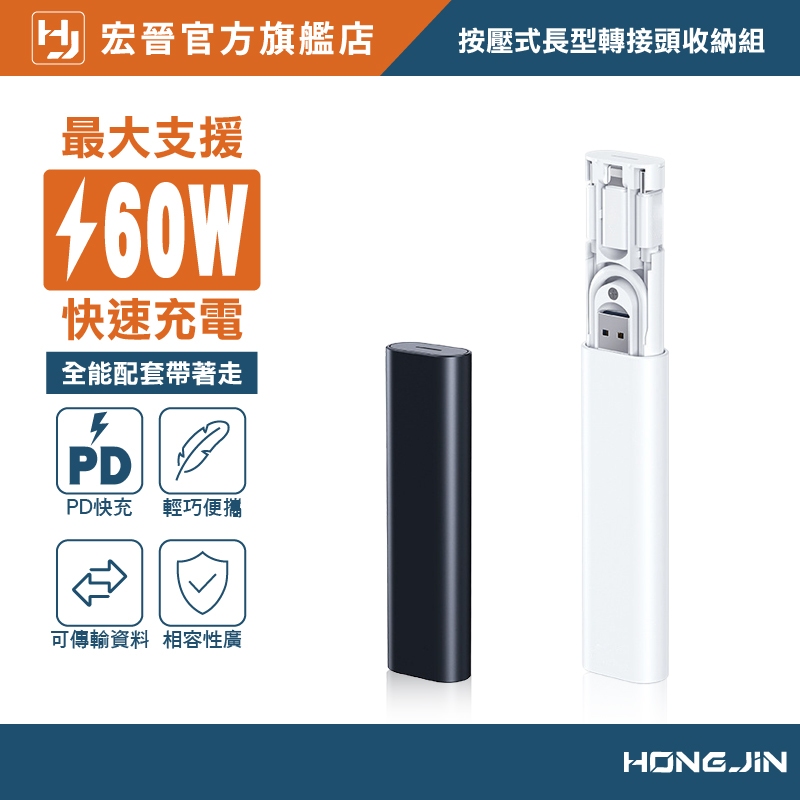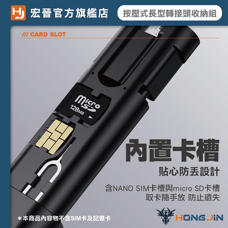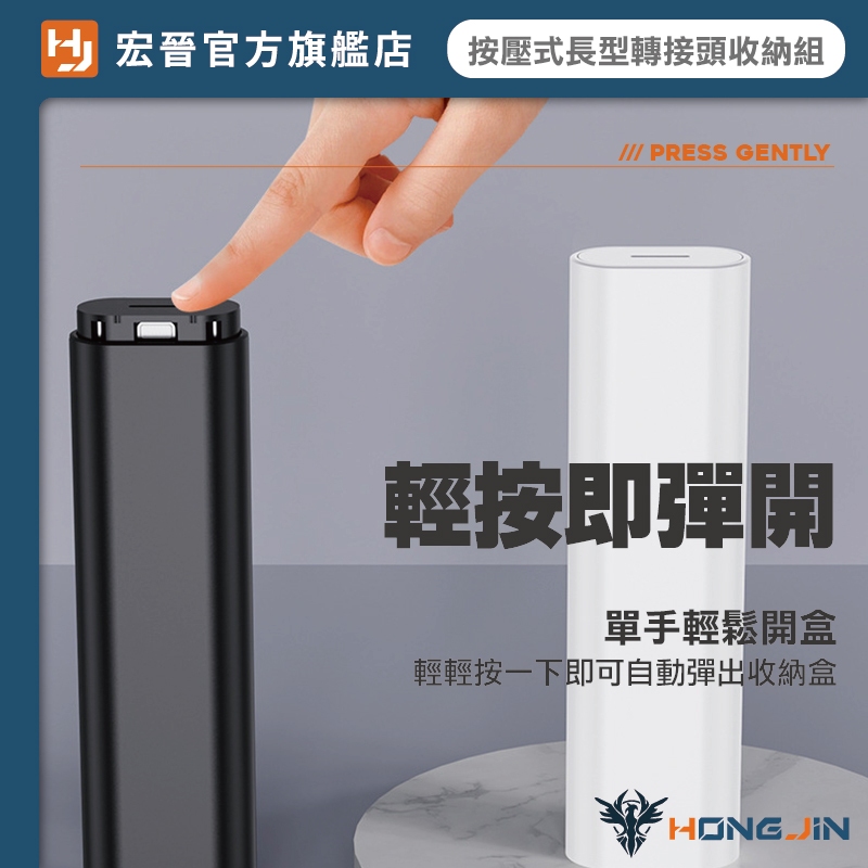 按壓式長型轉接頭收納組 收納盒 充電線 快充 PD 轉接 Tpe-C USB 水果 mirco USB 卡槽收納 卡針白色|黑色Cables, Chargers & ConvertersHONG JIN 宏晉 |3C資訊廣場