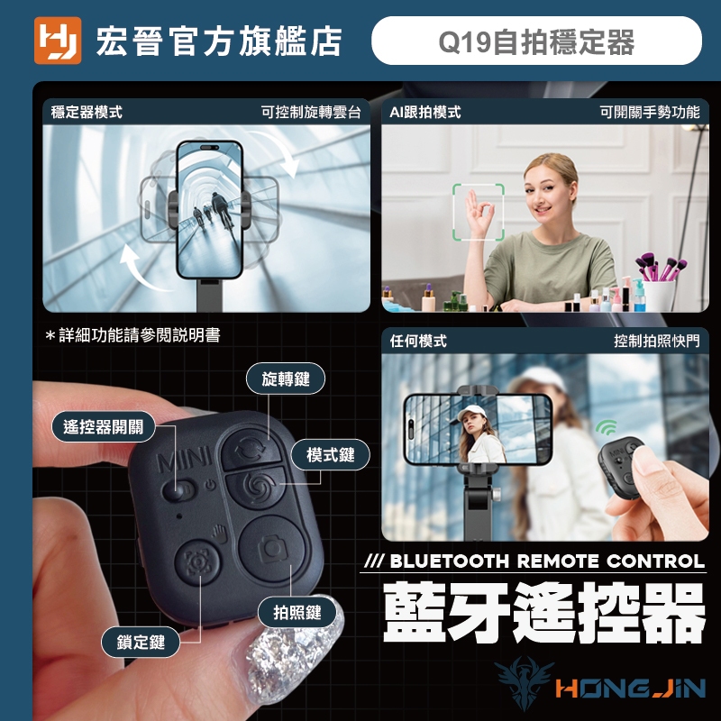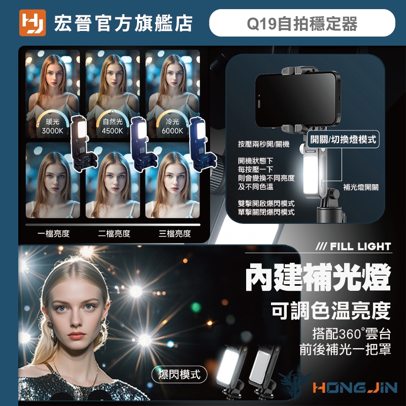 Q19多功能自拍穩定器 鋁合金伸縮 智慧雲台 藍牙遙控器 AI智慧追蹤 360度雲台 美顏補光 直播拍攝 必備神器Q19多功能自拍穩定器 鋁合金伸縮 智慧雲台 藍牙遙控器 AI智慧追蹤 360度雲台 美顏補光 直播拍攝 必備神器Selfie AccessoriesHONG JIN 宏晉 |3C資訊廣場