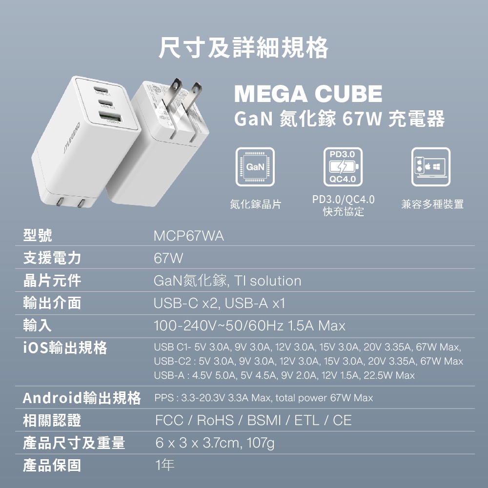 JTLEGEND MEGA CUBE GaN 67W /47W快速充電座_官旗店47W 白|67W 白Cables, Chargers & ConvertersJTLEGEND 官方旗艦店