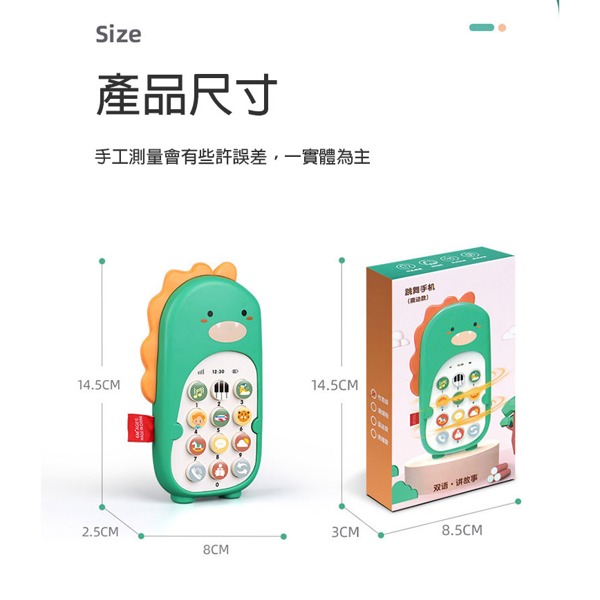 JOYBABY 音樂玩具手機 恐龍多功能中英雙語早教學習機 寶寶牙膠玩具粉色|綠色Educational ToysJoyBaby就愛寶貝