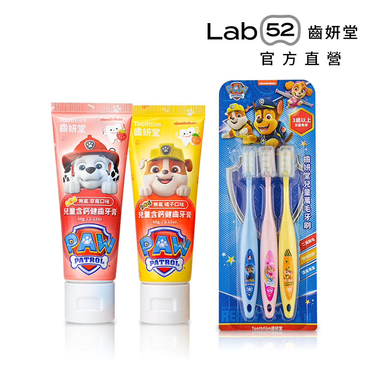 【Lab52齒妍堂】無氟學齡刷牙組|無氟牙膏 無氟漱口 不含氟牙膏 含鈣牙膏 兒童牙刷 汪汪隊牙膏 汪汪隊牙刷兒童萬毛牙刷(3入/組),橘子口味2入|兒童萬毛牙刷(3入/組),葡萄口味2入|兒童萬毛牙刷(3入/組),草莓口味2入|兒童萬毛牙刷(3入/組),橘子口味1入+葡萄口味1入|兒童萬毛牙刷(3入/組),橘子口味1入+草莓口味1入|兒童萬毛牙刷(3入/組),葡萄口味1入+草莓口味1入|兒童萬毛牙刷(3入/組),原味木糖醇2入|兒童萬毛牙刷(3入/組),原味口味1入+葡萄口味1入|兒童萬毛牙刷(3入/組),原味口味1入+草莓口味1入|兒童萬毛牙刷(3入/組),原味口味1入+橘子口味1入Baby Oral CareLab52 齒妍堂| 官方旗艦館