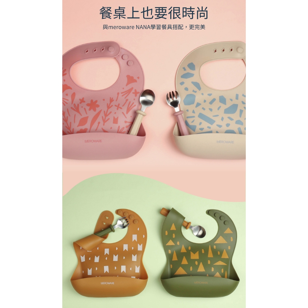 【MEROWARE】GINA 小捕手 矽膠立體圍兜 4色可選【La nube親子選物 台灣總代理】豆沙粉 + 花花世界|焦糖 + MERO皇冠|抹茶綠 + 童趣森林|奶茶啡 + 繽紛磨石BibsLa nube親子選物 | bebenuvo meroware總代理