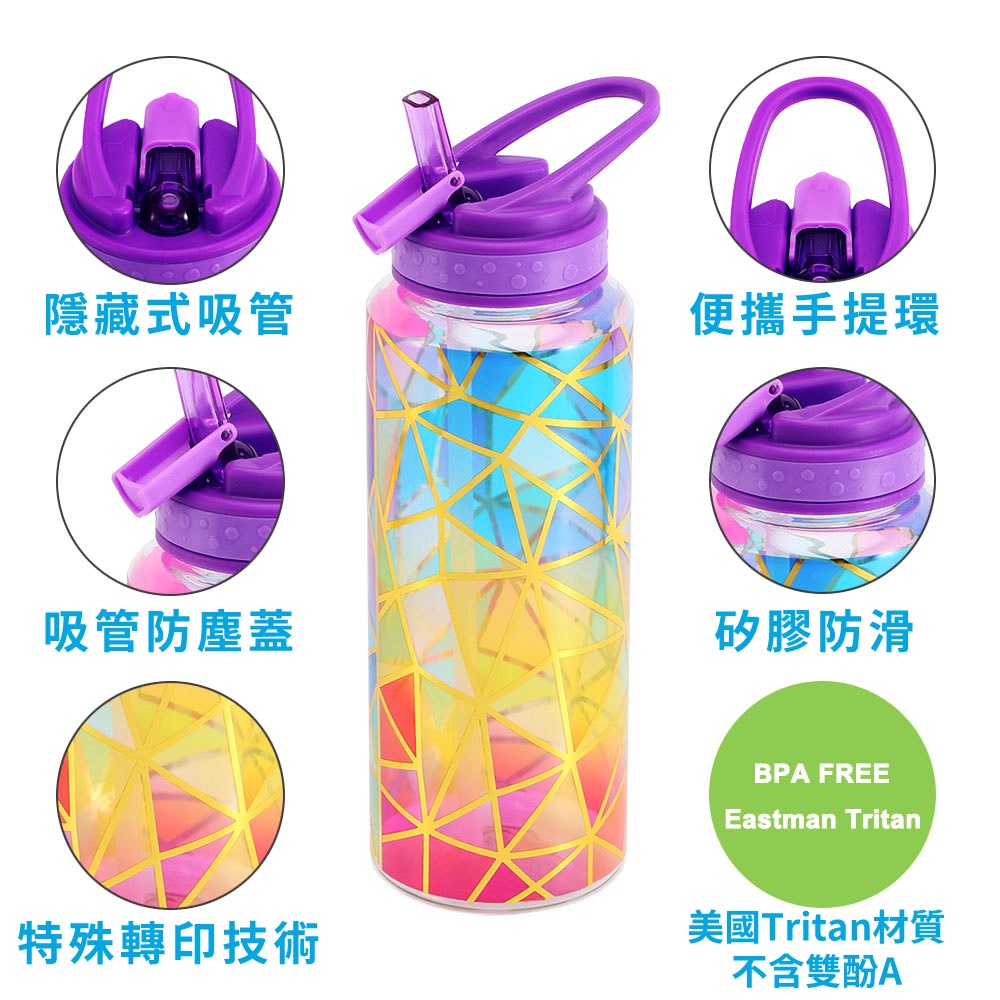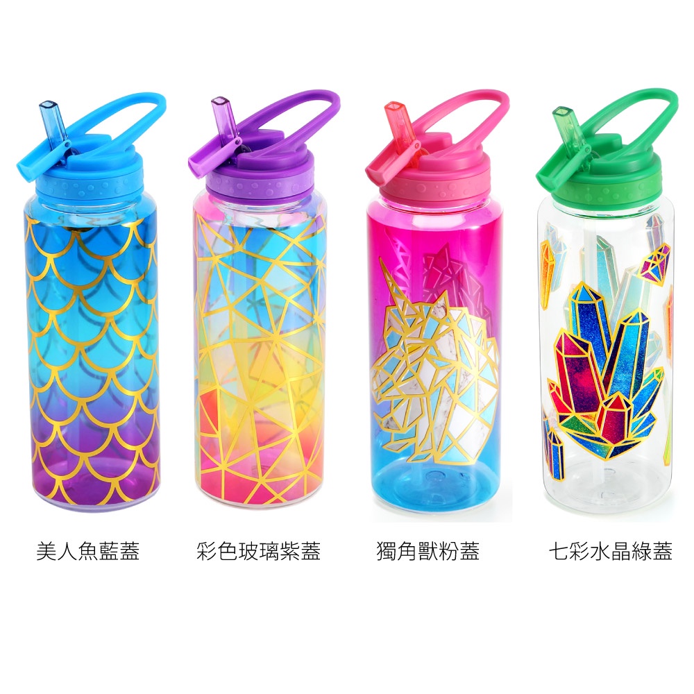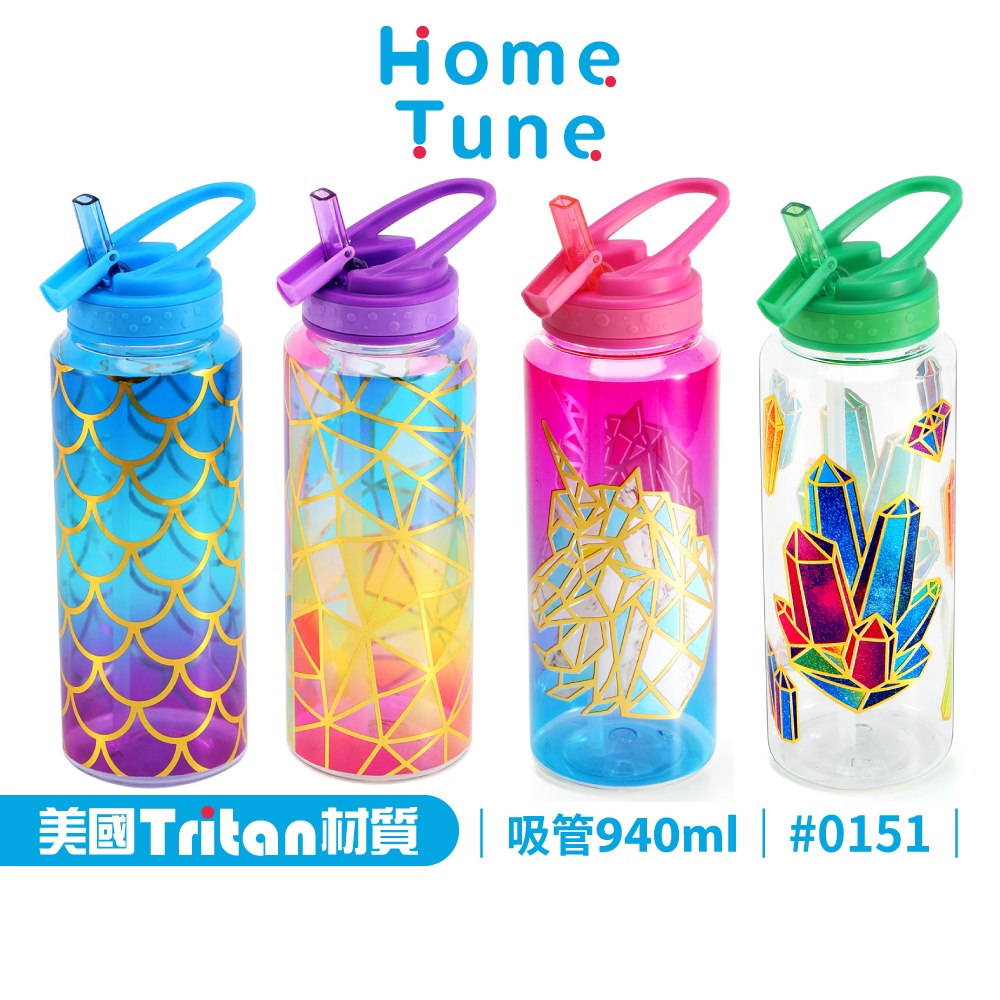 Home Tune家音透明翻蓋吸管式水壺940毫升|<特價>美國Tritan材質大容量運動水瓶無雙酚A|0151美人魚藍蓋|彩色玻璃紫蓋|獨角獸粉蓋|七彩水晶綠蓋UtensilsHome Tune家音