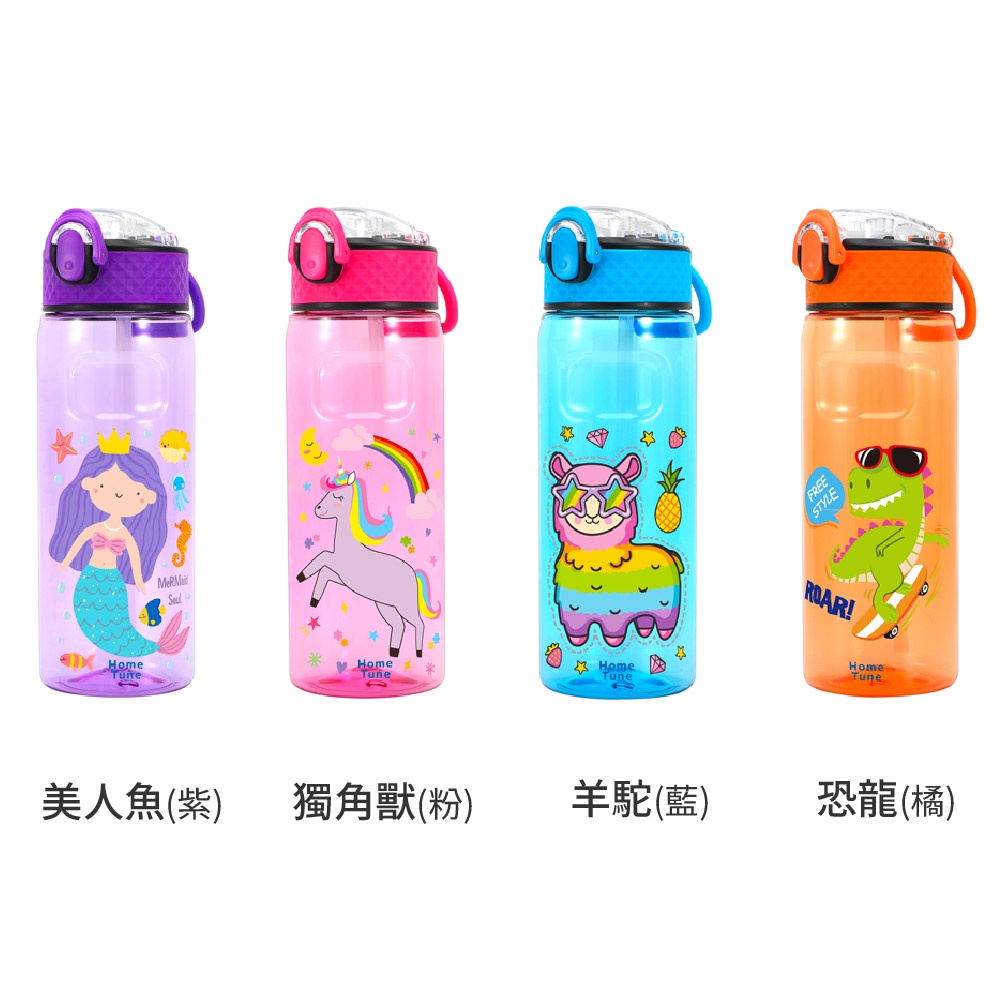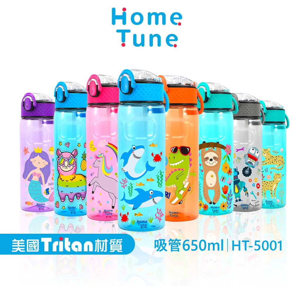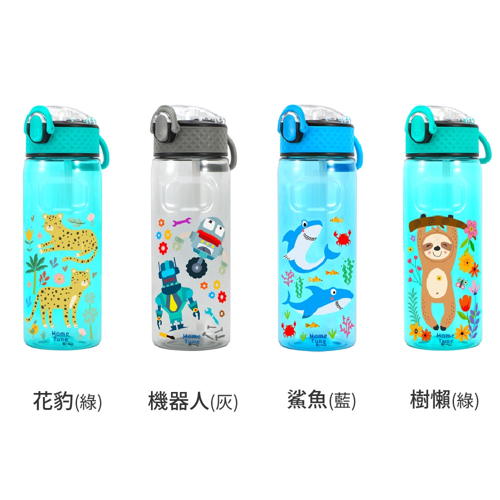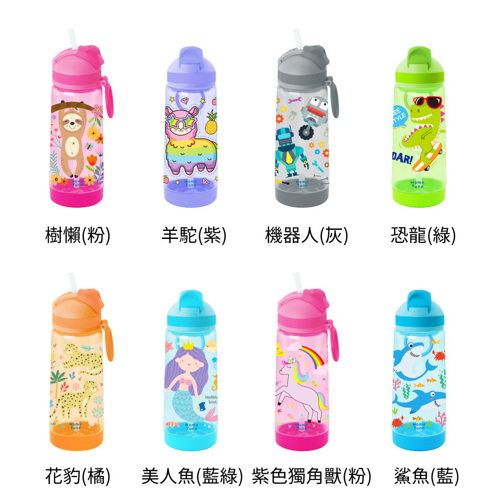 Home Tune家音 鎖扣彈蓋吸管式水壺650ml|Tritan水壺無雙酚A兒童水壺防漏水壺吸管水壺_HT-5001樹懶(綠)|美人魚(紫)|獨角獸(粉)|羊駝(藍)|恐龍(橘)|花豹(綠)|機器人(灰)|鯊魚(藍)UtensilsHome Tune家音