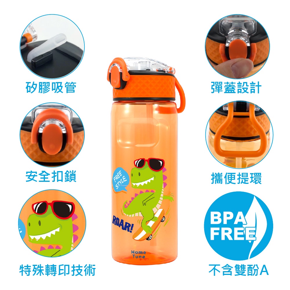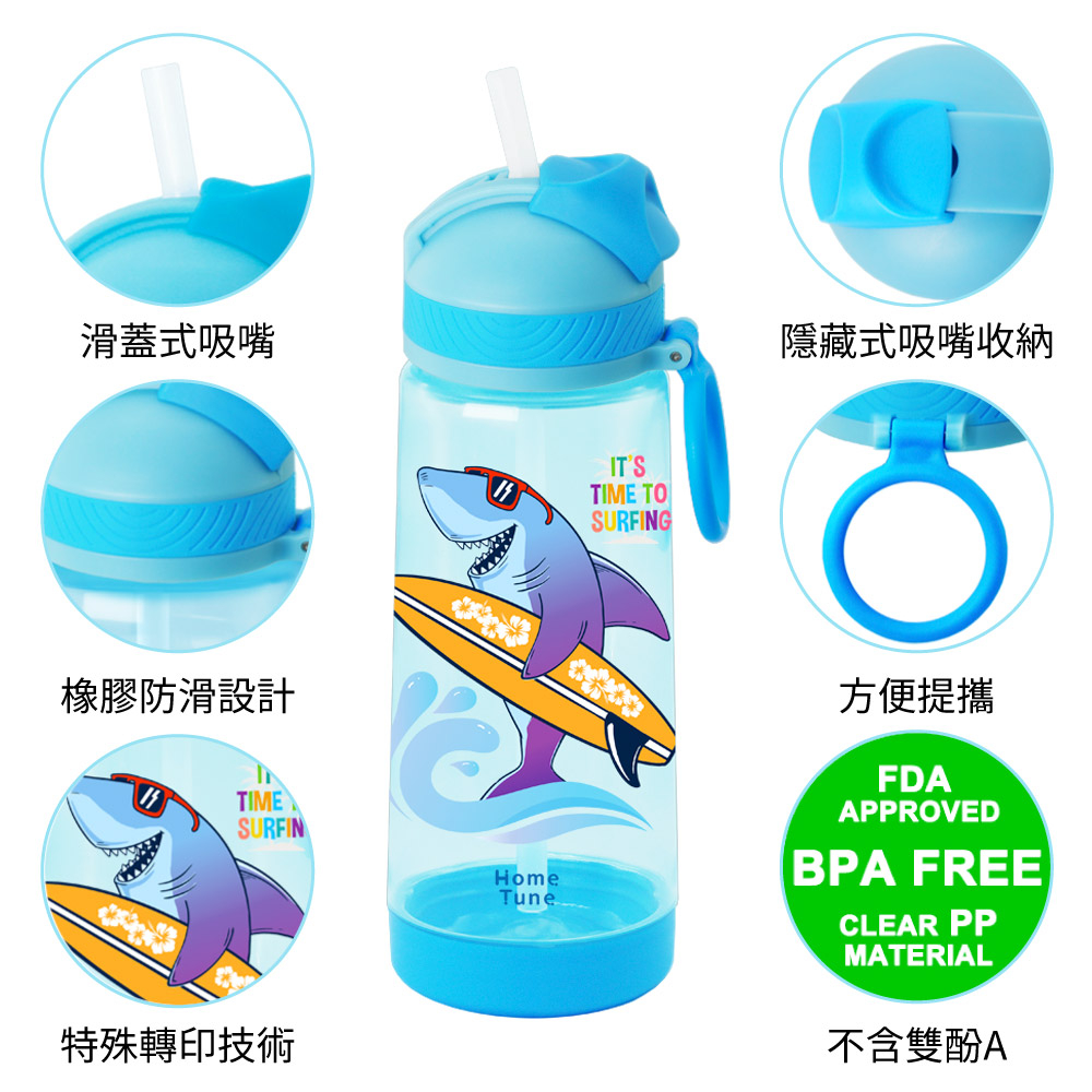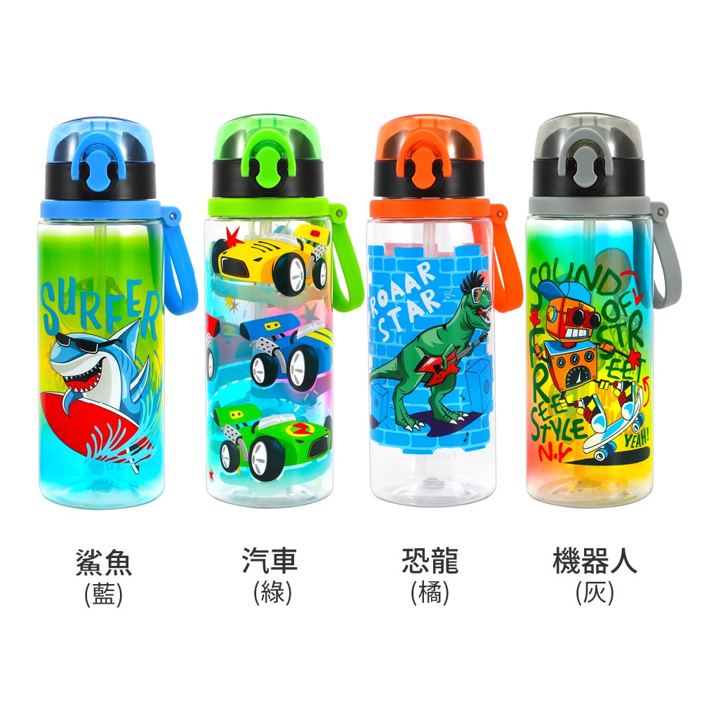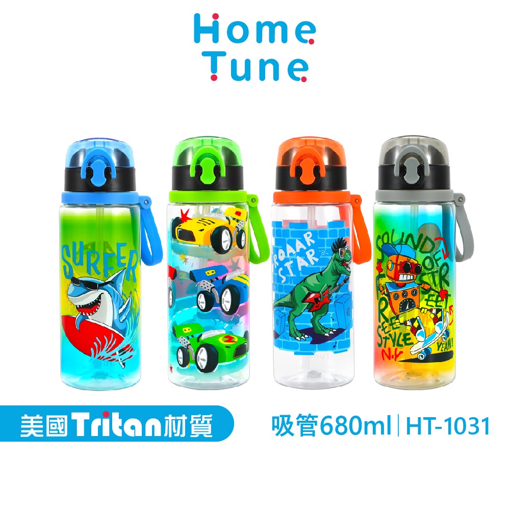 Home Tune家音兒童印花彈蓋吸管式水壺680ml|Tritan水壺兒童水壺外出水壺吸管水壺無雙酚A_HT-1031鯊魚(藍)|汽車(綠)|恐龍(橘)|機器人(灰)UtensilsHome Tune家音