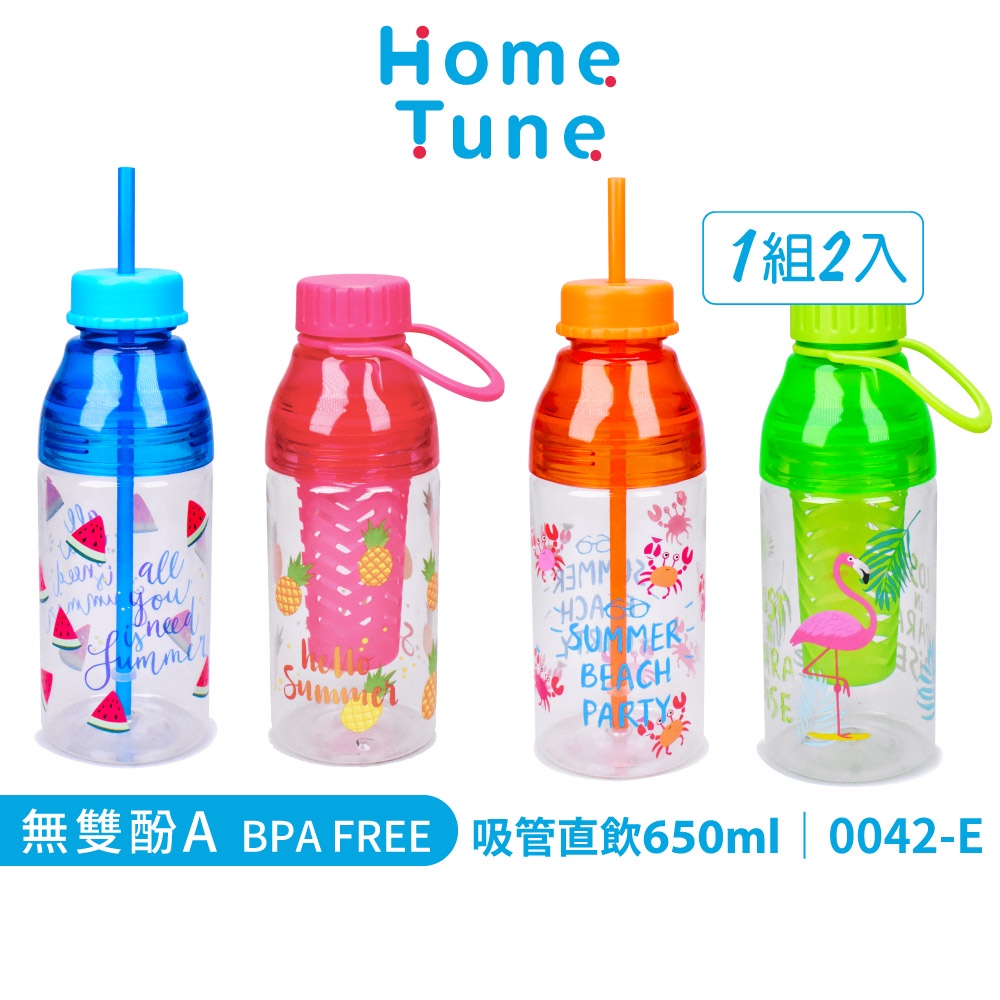 【特價出清】Home Tune家音 旋蓋直飲水壺/吸管隨行杯650ml(2入/組)|兒童學習杯學飲杯吸管杯_0042-E西瓜(藍)/鳳梨(粉)|螃蟹(橘)/紅鶴(綠)UtensilsHome Tune家音