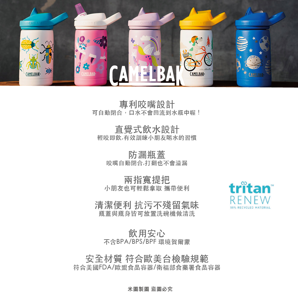 /台灣現貨 附發票/ CAMELBAK 400ml [贈防塵蓋]eddy+ Kids 兒童吸管水壺 原廠正貨彩色蝴蝶|鯊魚樂園|雪人雪橇|嘻哈恐龍|露營蟲蟲|娃娃美人魚|野生動物園|花卉世界|彩虹花卉|海洋野餐|慶典飛龍|恐龍大廚|鯊魚夏令營|獨角獸花卉|熱帶魚|叢林探索|叢林探險Utensilsimitu 米圖
