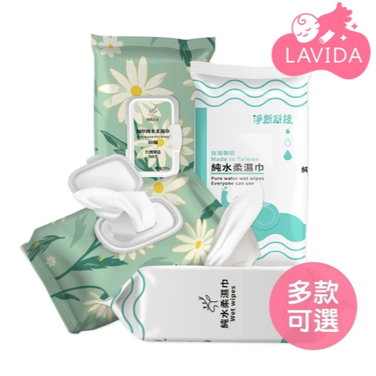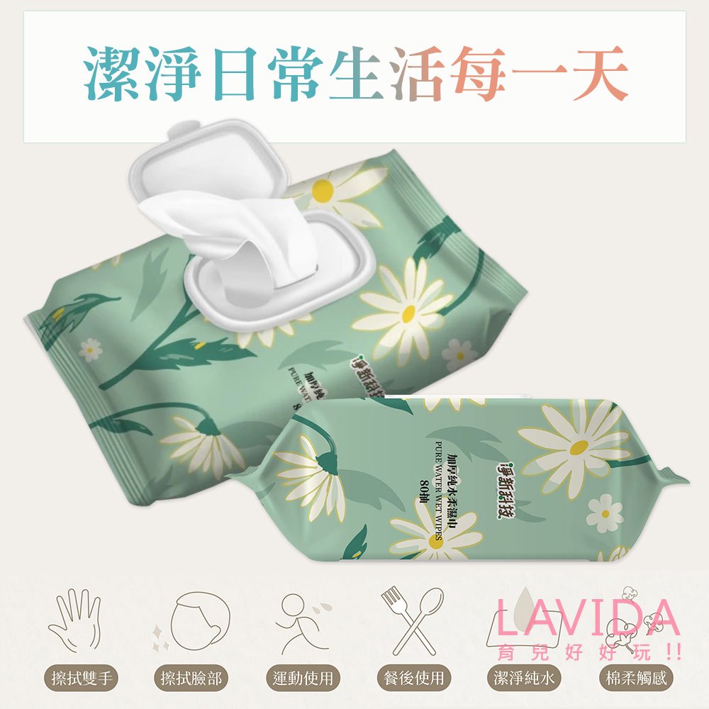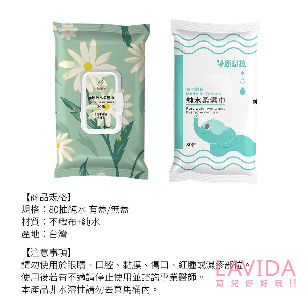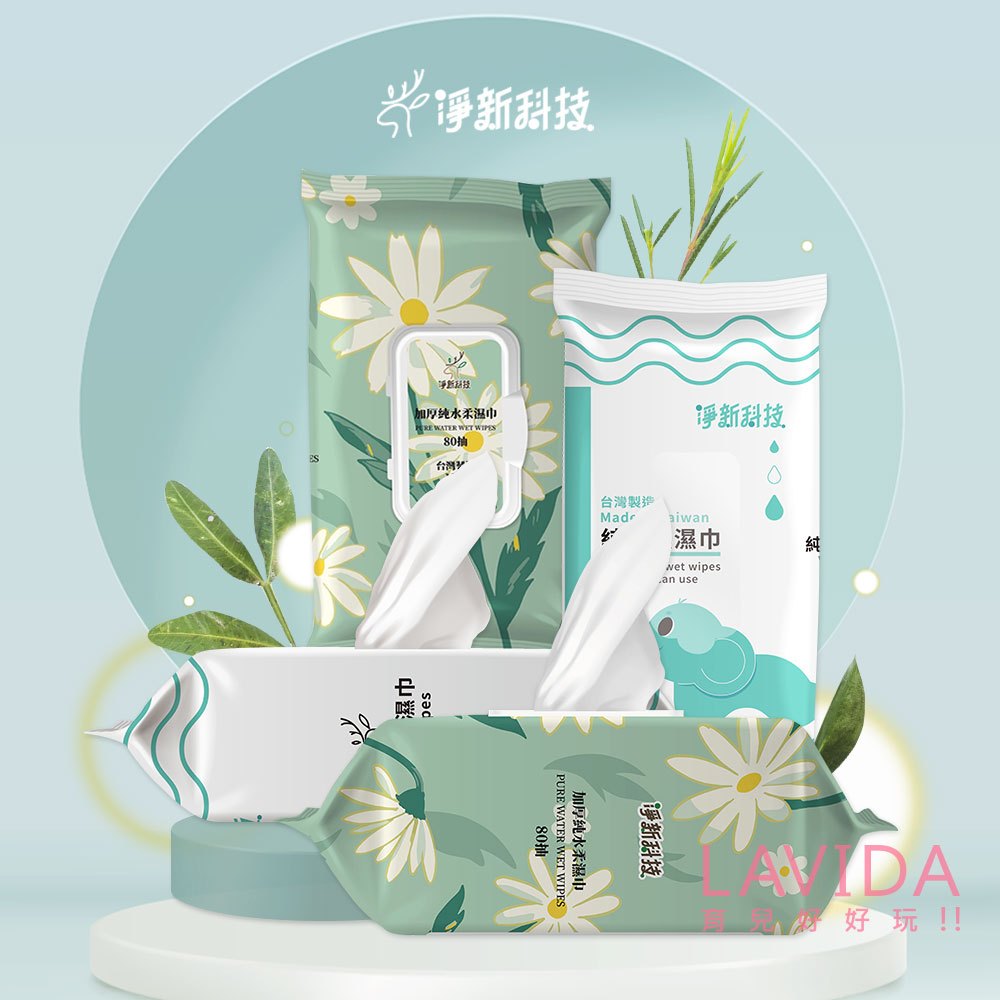 【台灣淨新】加厚純水濕紙巾 純水濕紙巾 無香精濕紙巾 無酒精濕紙巾 洗臉巾 濕紙巾 純水 80抽加厚台灣製 淨新濕紙巾10抽(台灣製)|有蓋-80抽(台灣製)WipesLAVIDA 育兒好好玩!