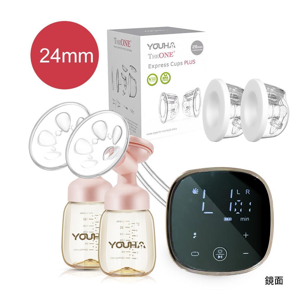 【優合 Youha】極靜變頻雙邊電動吸乳器(Twins) + 優捷Express Cups Plus 免手持真空集乳杯粉色液晶,24mm|粉色液晶,28mm|黑色鏡面,24mm|黑色鏡面,28mmBreastfeedingMalldj親子購物網