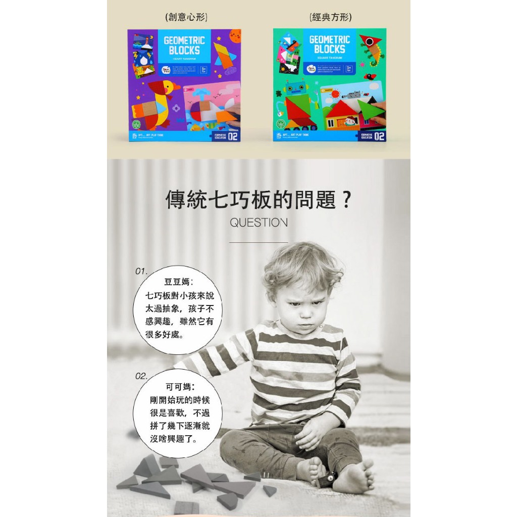 NG品出清【JarMelo 原創美玩】腦力全開七巧板/益智玩具(2款可選)創意心型|經典方型Educational ToysJarMelo 原創美玩 | 品牌旗艦店(台灣總代理)