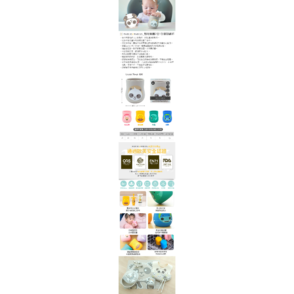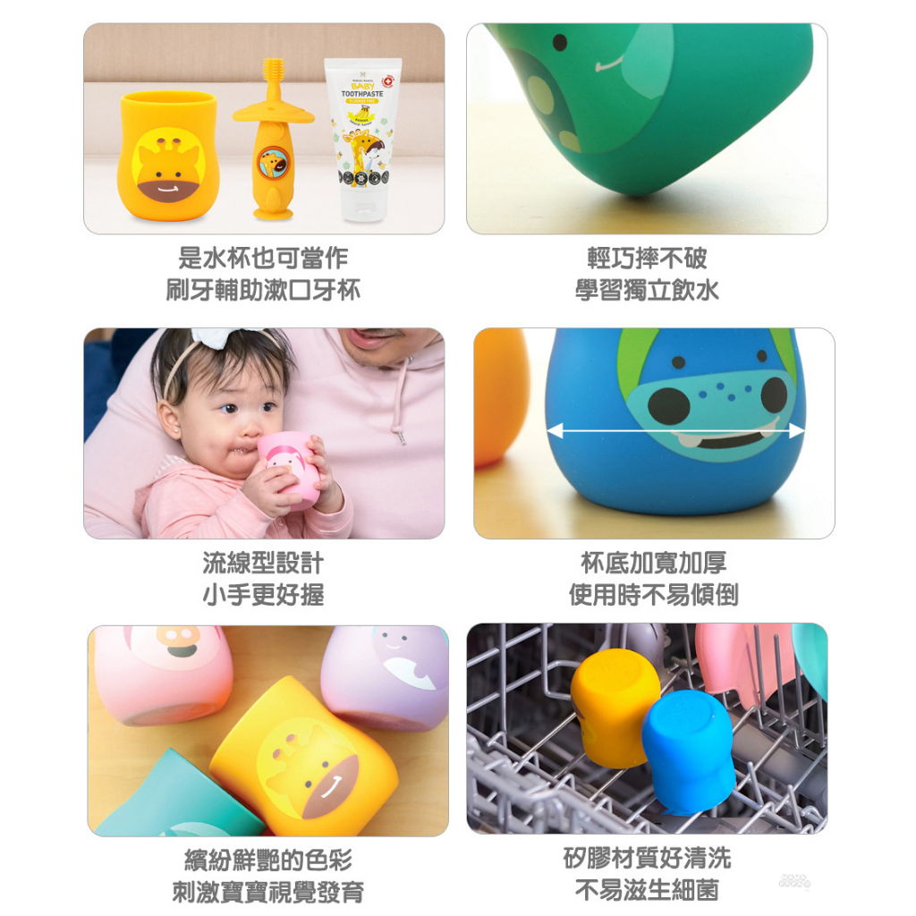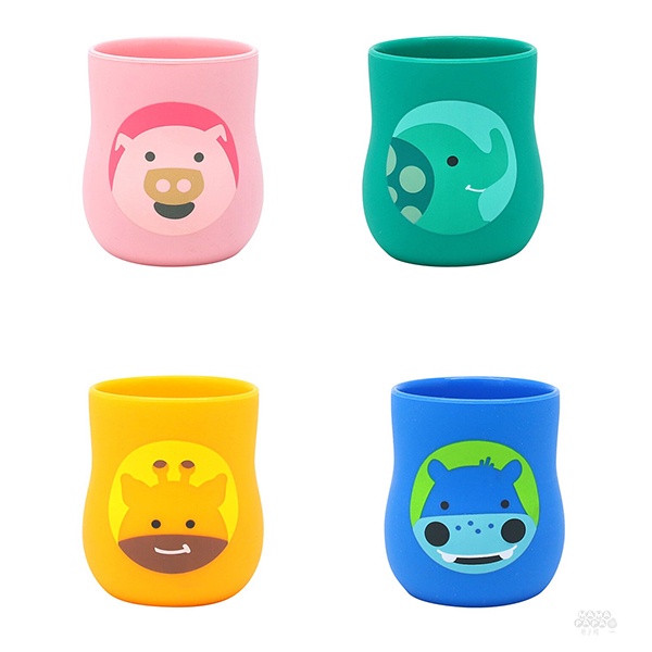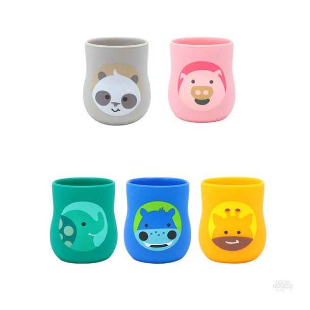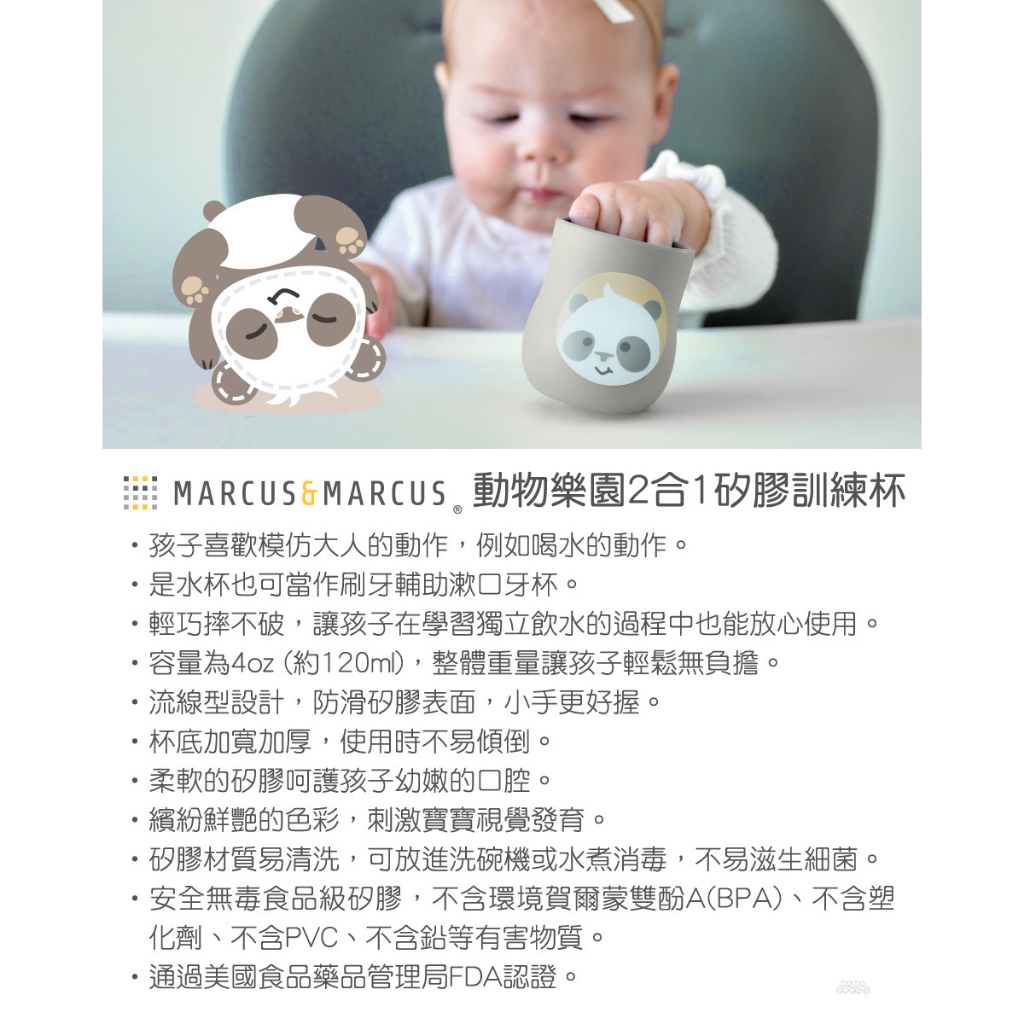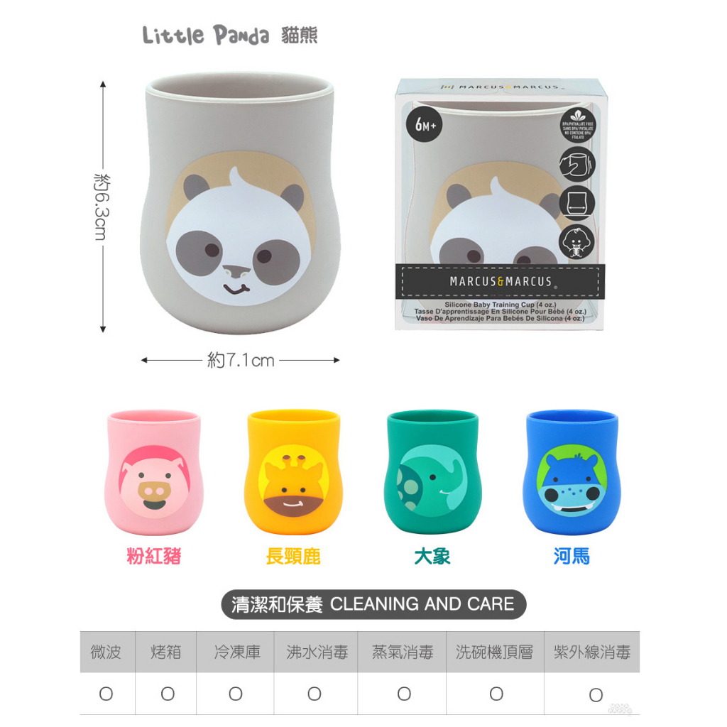 【加拿大MARCUS&MARCUS】動物樂園2合1矽膠訓練杯(多款可選)粉紅豬|大象|長頸鹿|河馬|貓熊Utensilsmama-papa親子網