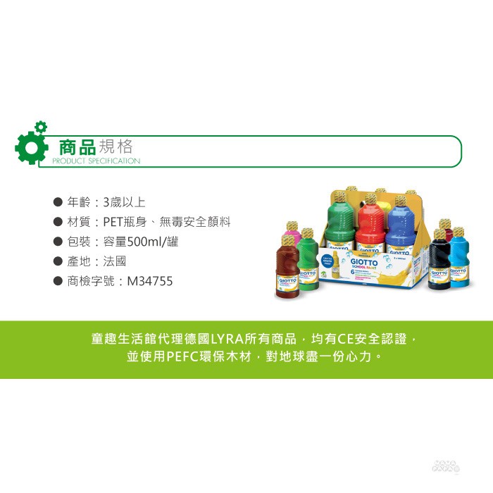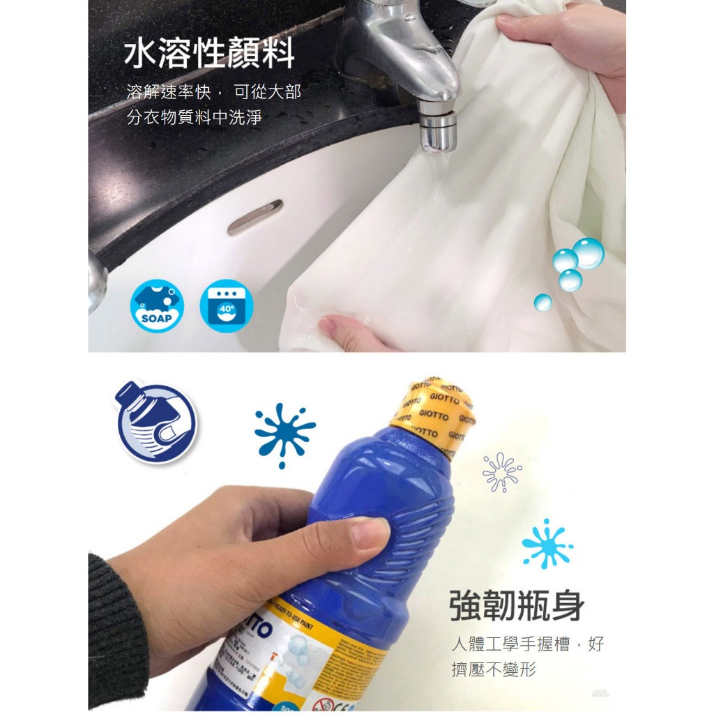 【義大利 GIOTTO】可洗式兒童顏料500ml(單罐多色可選) 一次買6瓶加送調色盤紅|藍|黃|白|黑|綠|棕|桃紅|橘|深藍Educational Toysmama-papa親子網