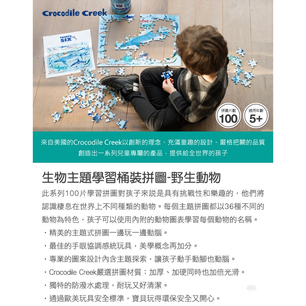 《美國Crocodile Creek》生物主題學習桶裝拼圖-野生動物(100片)《美國Crocodile Creek》生物主題學習桶裝拼圖-野生動物(100片)Educational Toysmama-papa親子網