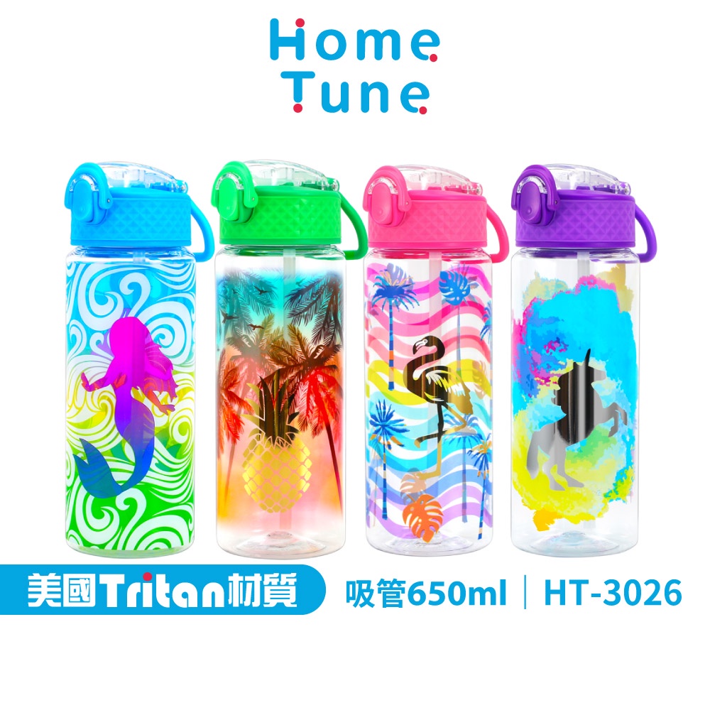 Home Tune家音 鎖扣彈蓋吸管式水壺650ml|Tritan水壺無雙酚A兒童水壺防漏水壺吸管水壺_HT-3026火鶴粉|獨角獸紫|美人魚藍|鳳梨綠UtensilsHome Tune家音