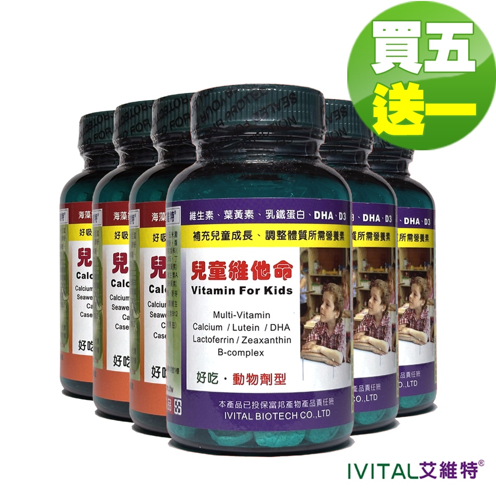 IVITAL艾維特®兒童鈣片100錠+兒童維他命80錠甜嚼錠「買5送1雙效組」【共6瓶入 兒童成長必備鈣質+綜合維生素】IVITAL艾維特®兒童鈣片100錠+兒童維他命80錠甜嚼錠「買5送1雙效組」【共6瓶入 兒童成長必備鈣質+綜合維生素】Baby Vitamins & SupplementsIVITAL艾維特®官方旗艦店