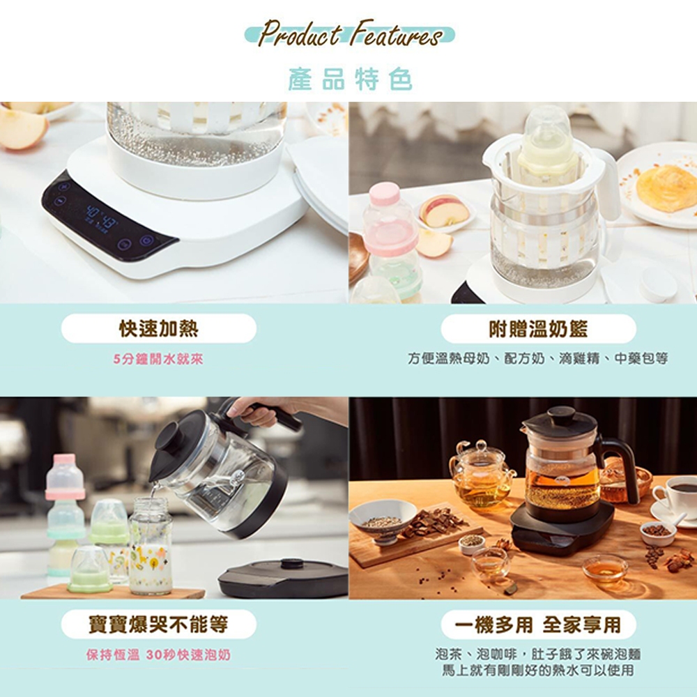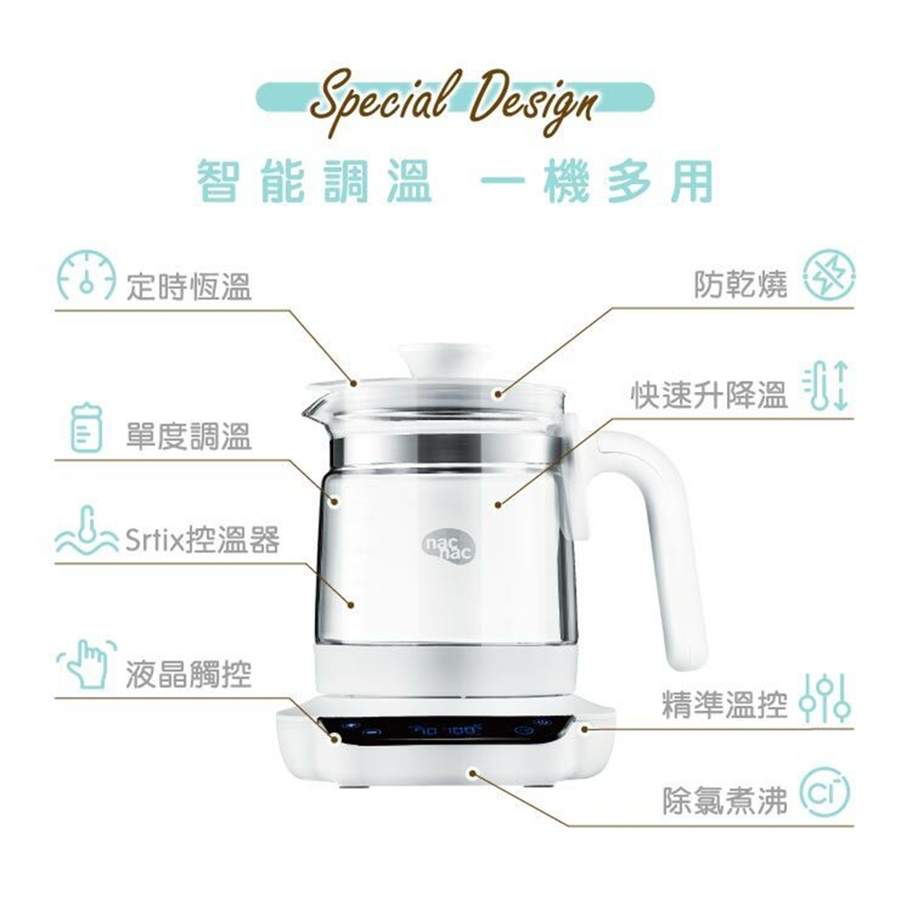 Nac Nac 多功能溫控調乳器【正版公司現貨】 熱水器 溫控調乳器玻璃壺 調乳器 溫奶器 泡奶神器 調奶器黑|白Bottle-feedingLAVIDA 育兒好好玩!