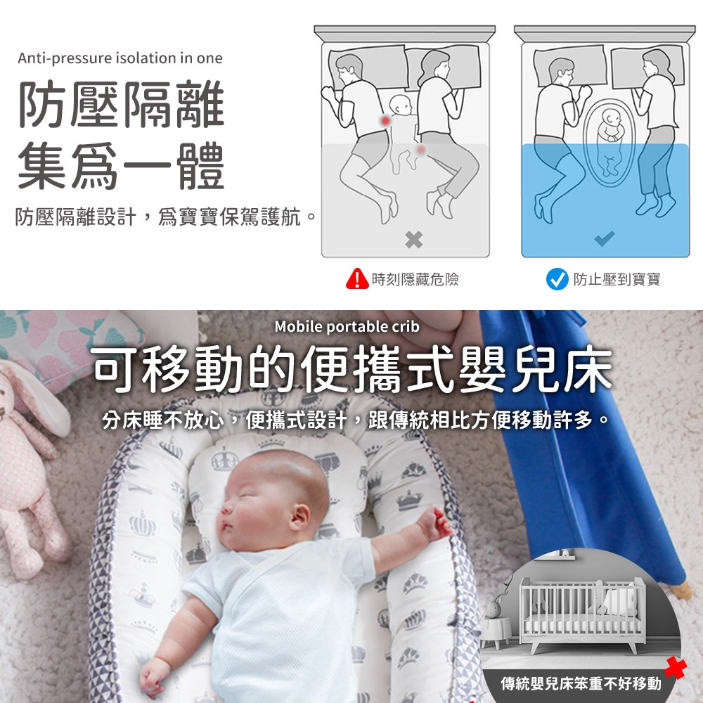 【LAVIDA嚴選】嬰兒床中床 便攜式防壓嬰兒床 床中床 攜帶式嬰兒床 床邊床 防壓嬰兒床 新生兒必備 寶寶床墊灰邊長頸鹿|彩色大象|灰邊恐龍|三角黃冠|波浪灰黃冠|灰白雲|森林灰Cribs & Cradles & BedsLAVIDA 育兒好好玩!