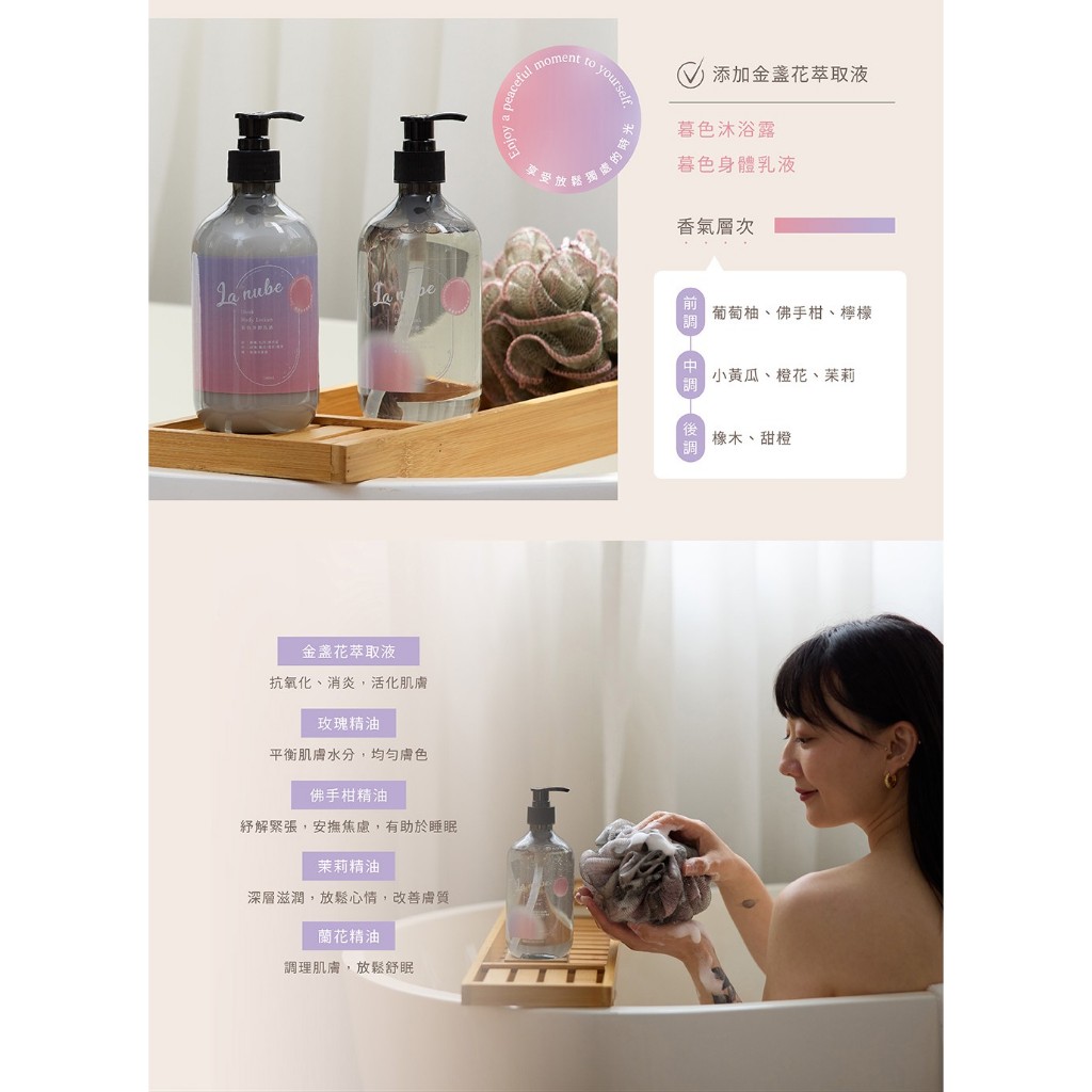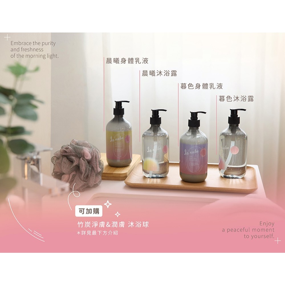【La nube】精油沐浴系列身體乳500ml,晨曦|身體乳500ml,暮色|沐浴露500ml,晨曦|沐浴露500ml,暮色Hair Care & Body WashLa nube親子選物 | bebenuvo meroware總代理