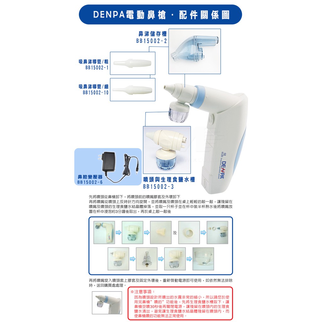 【DENPA】電動式鼻腔噴吸兩用鼻槍機 鼻腔清潔器 洗鼻器 吸鼻涕機 輕巧便攜 附專用噴頭 靜音設計 感冒鼻腔護理單一規格Nasal CareMalldj親子購物網
