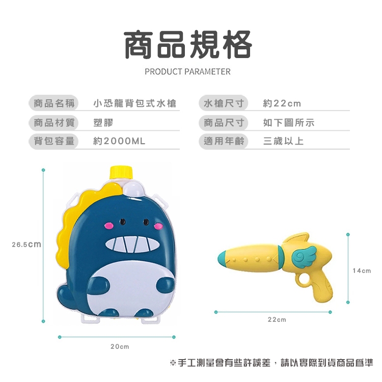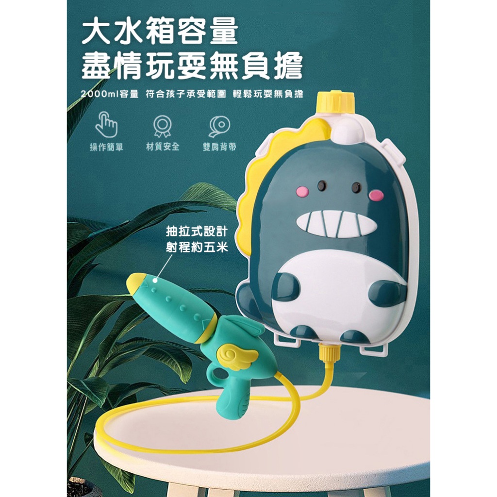 【Hi-toys】2000ml大容量恐龍造型背包水槍/抽拉式水槍/戲水玩具/沙灘玩具(兩色可選)藍綠色|粉色Sports & Outdoor PlayHi-toys