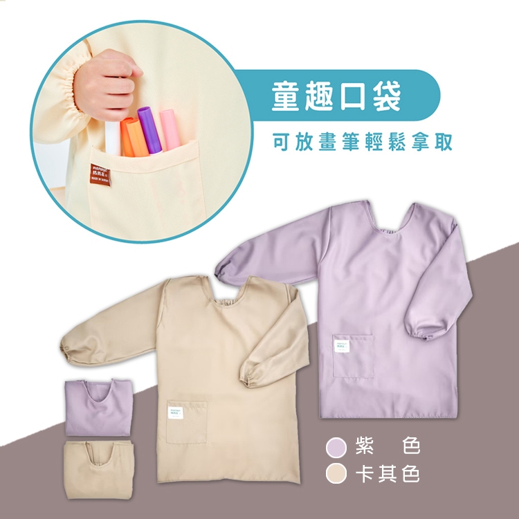 【mamayo】長袖長版畫畫衣/防水圍兜-兒童款(7-11歲/台灣製/兩色可選)紫色|卡其色Educational ToysHi-toys