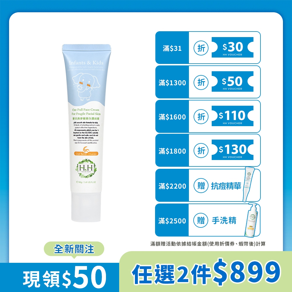 HH寶貝燕麥敏弱全護面霜HH寶貝燕麥敏弱全護面霜Baby SkincareHH草本新淨界 (私密/寶寶/食品/保養品都在HH)