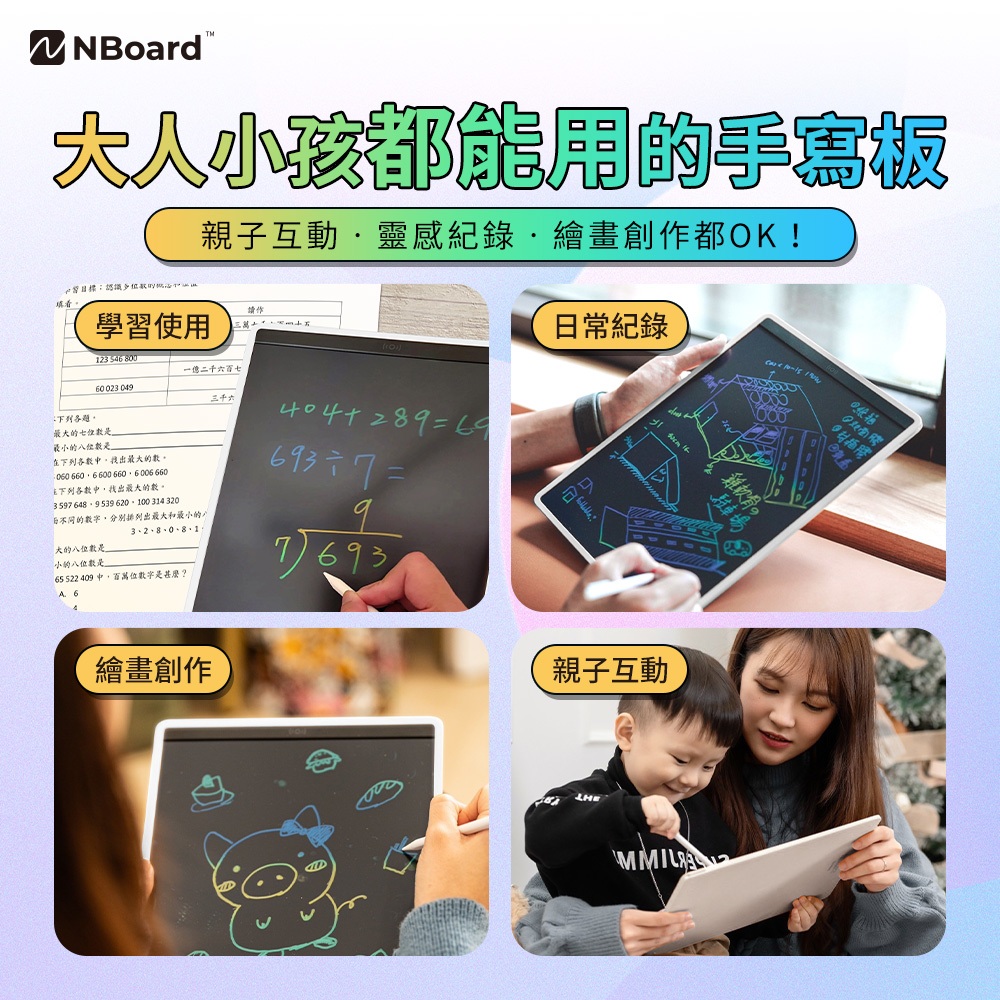 NBoard 13.5吋 彩色液晶手寫板 白色 兒童畫板 液晶畫板 lcd畫板 寫字板 NBXHB07G手寫板(2入)|手寫板(1入)Educational ToysKamera 佳美能旗艦館