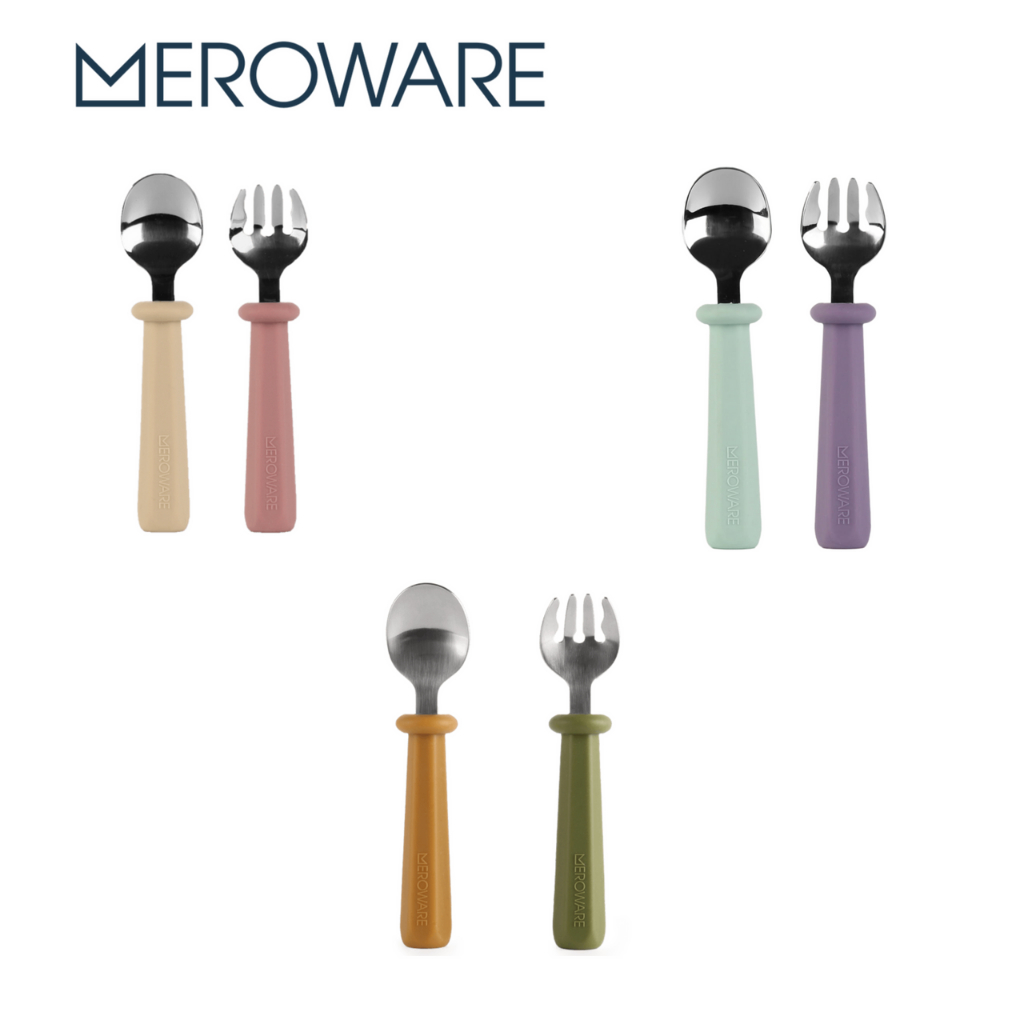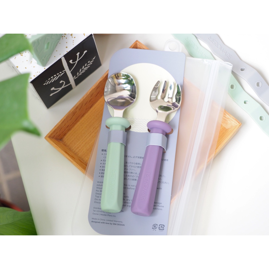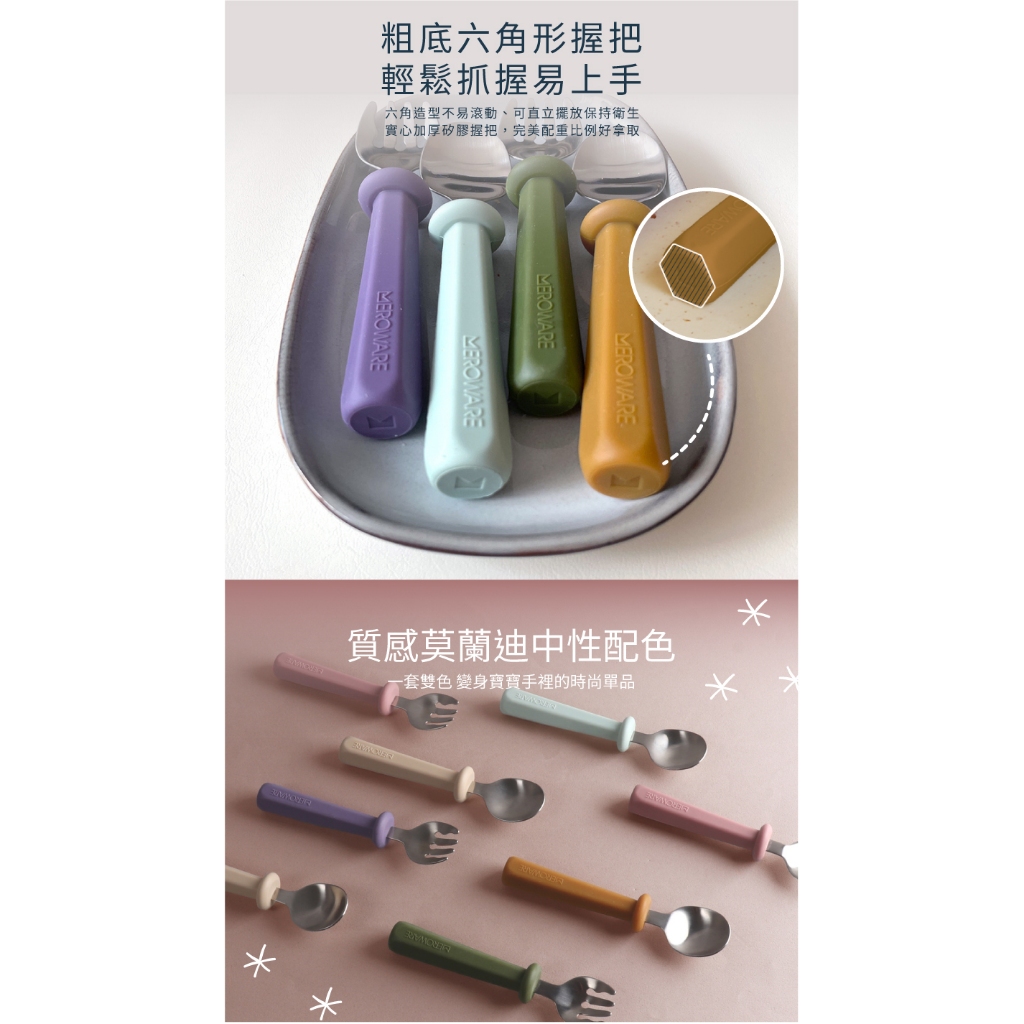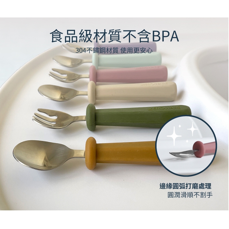 【MEROWARE】NANA 好好拿不銹鋼學習餐具組 3色可選 兒童湯匙+兒童叉子+餐具收納袋【La nube親子選物】奶茶咖+豆沙粉|薄荷綠+丁香紫|焦糖+抹茶綠UtensilsLa nube親子選物 | bebenuvo meroware總代理