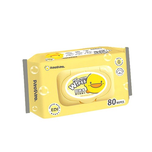 【黃色小鴨 PiYO PiYO】超厚護膚柔濕巾 EDI超純水 寶寶濕巾 無酒精 無香料 掀蓋式 超厚加厚 高效清潔80抽X1|80抽X3WipesMalldj親子購物網