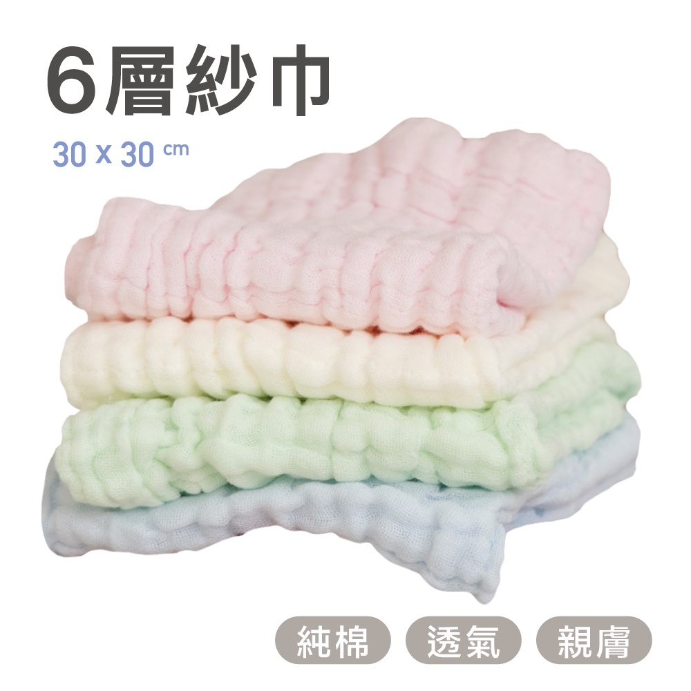 Mamamia孕婦裝 6層紗布巾 30*30cm 洗澡巾 毛巾 新生兒 初生兒 嬰兒 口水巾 吸汗巾 [F515]黃|綠|藍|粉Bath Robes, Towels & Wash ClothsMamamia孕婦裝
